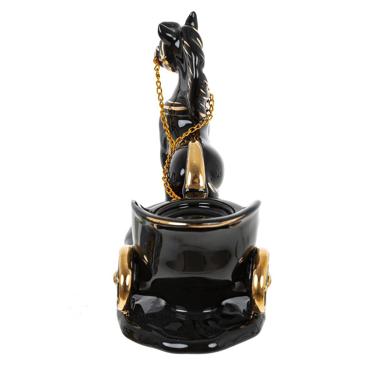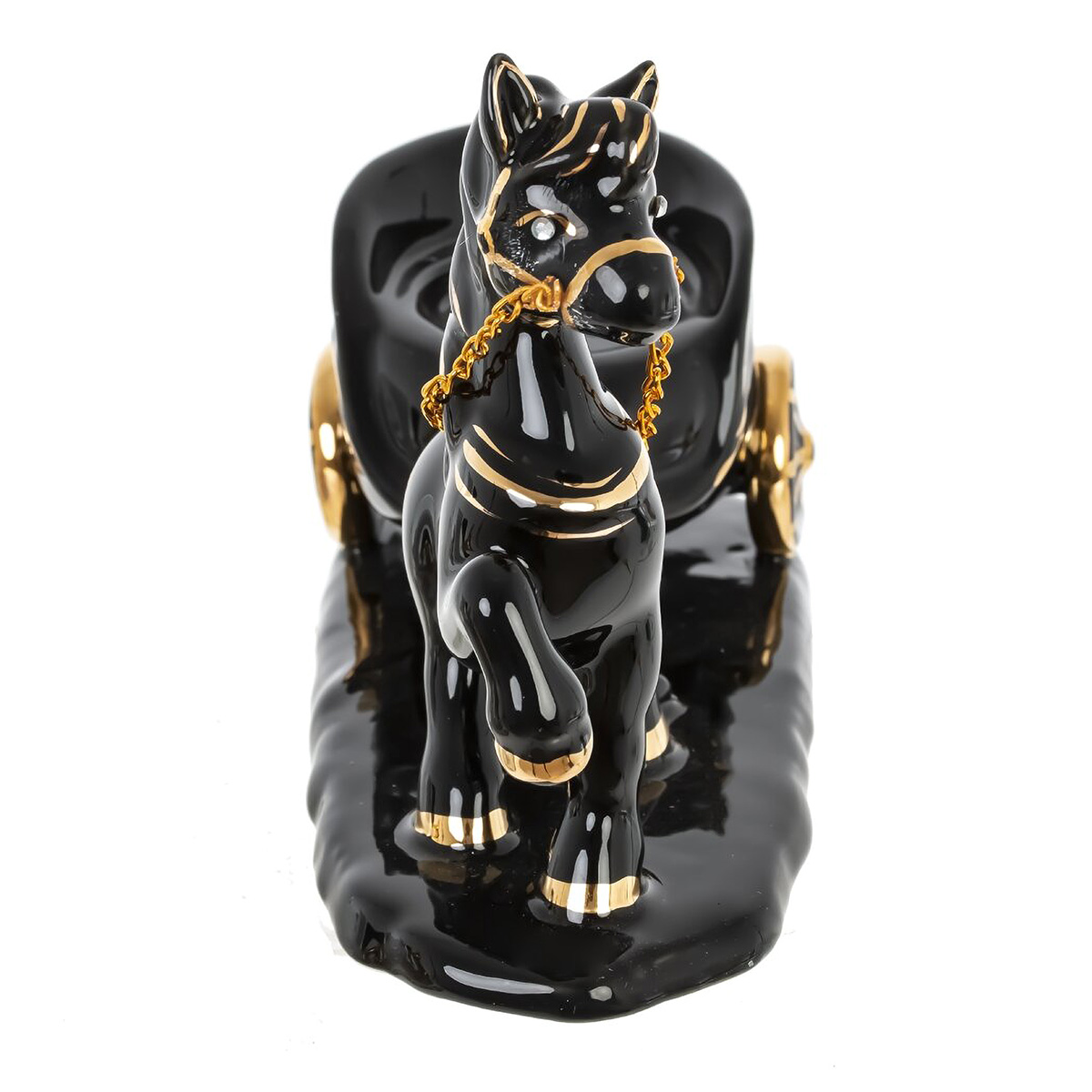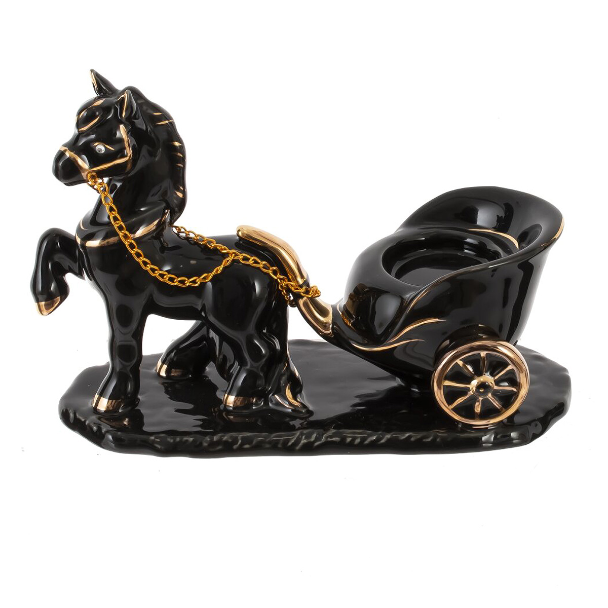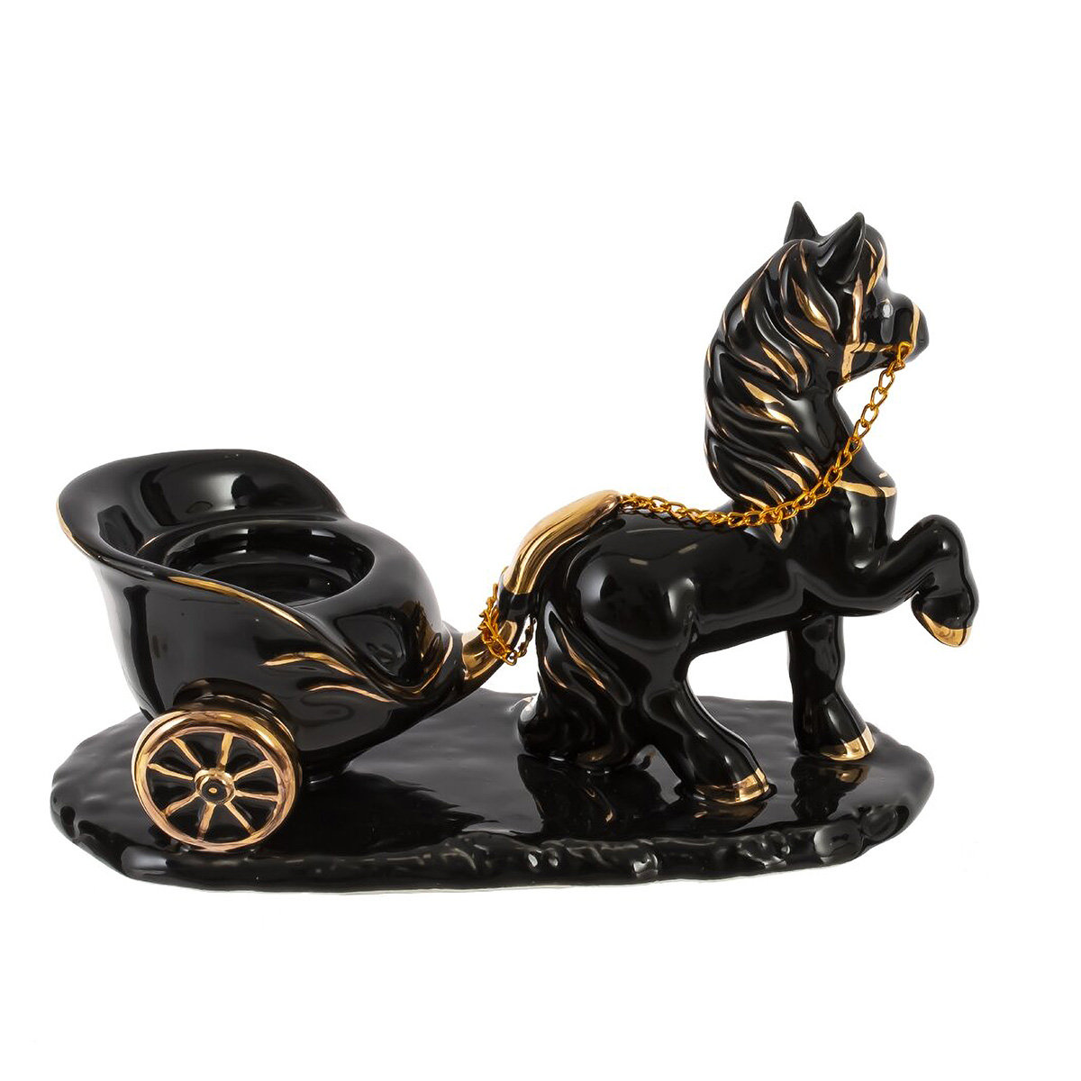 822599Фигурка декоративная "Лошадка" с подсвечником, L17 W7 H12 смЭлегантная декоративная фигурка в виде лошадки с подсвечником— это не только красивый элемент интерьера, но и практичный аксессуар. Изготовлена из высококачественного фарфора черногот цвета и украшена утонченными золотыми элементами, она придаёт пространству изысканность и уют. Такая фигурка станет прекрасным подарком, символизирующим удачу, движение вперёд и гармонию. Идеально впишется в классический и современный интерьер, украсит полку, туалетный столик или рабочее место. Благородное сочетание цветов делает изделие универсальным и по-настоящему праздничным.