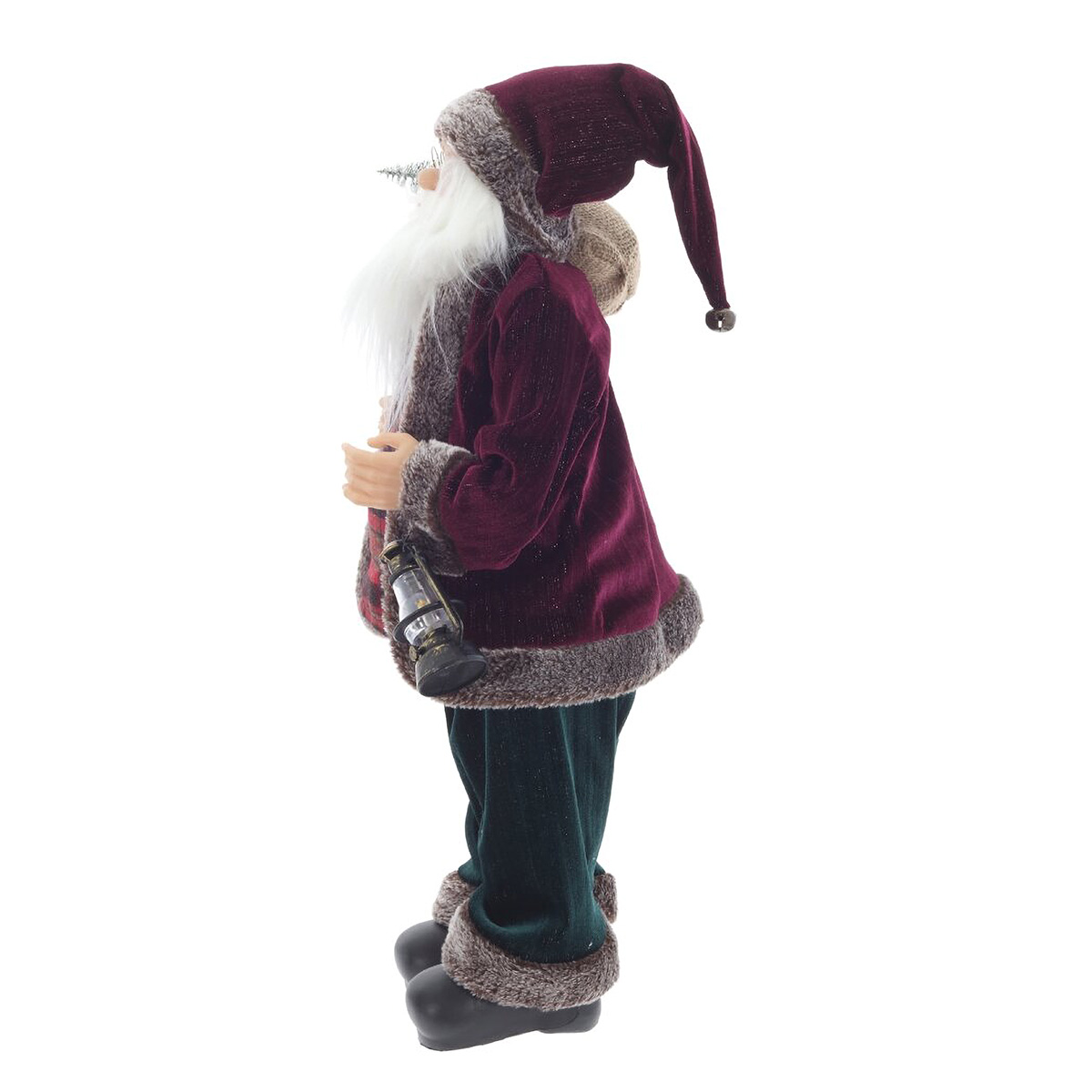 822846Дед Мороз, L27 W20 H60 смОбъёмная новогодняя фигурка Деда Мороза, выполненная из сочетания полимерных и текстильных материалов. Лицо и ладони отлиты из прочного полимера с аккуратной прорисовкой черт, борода и усы из мягкого синтетического волокна. Костюм сшит из бархатистого текстиля бордового и тёмно?зелёного оттенков с опушкой под мех, клетчатая рубаха придаёт домашний уют. В руке — мини?фонарь, на плече — мешок из мешковины с шишками, ягодами и еловой веткой. Устойчивая подошва позволяет ставить украшение на полку, камин или под ёлку, создавая тёплую праздничную атмосферу. Отлично подойдёт для подарка и для оформления интерьера к Новому году.