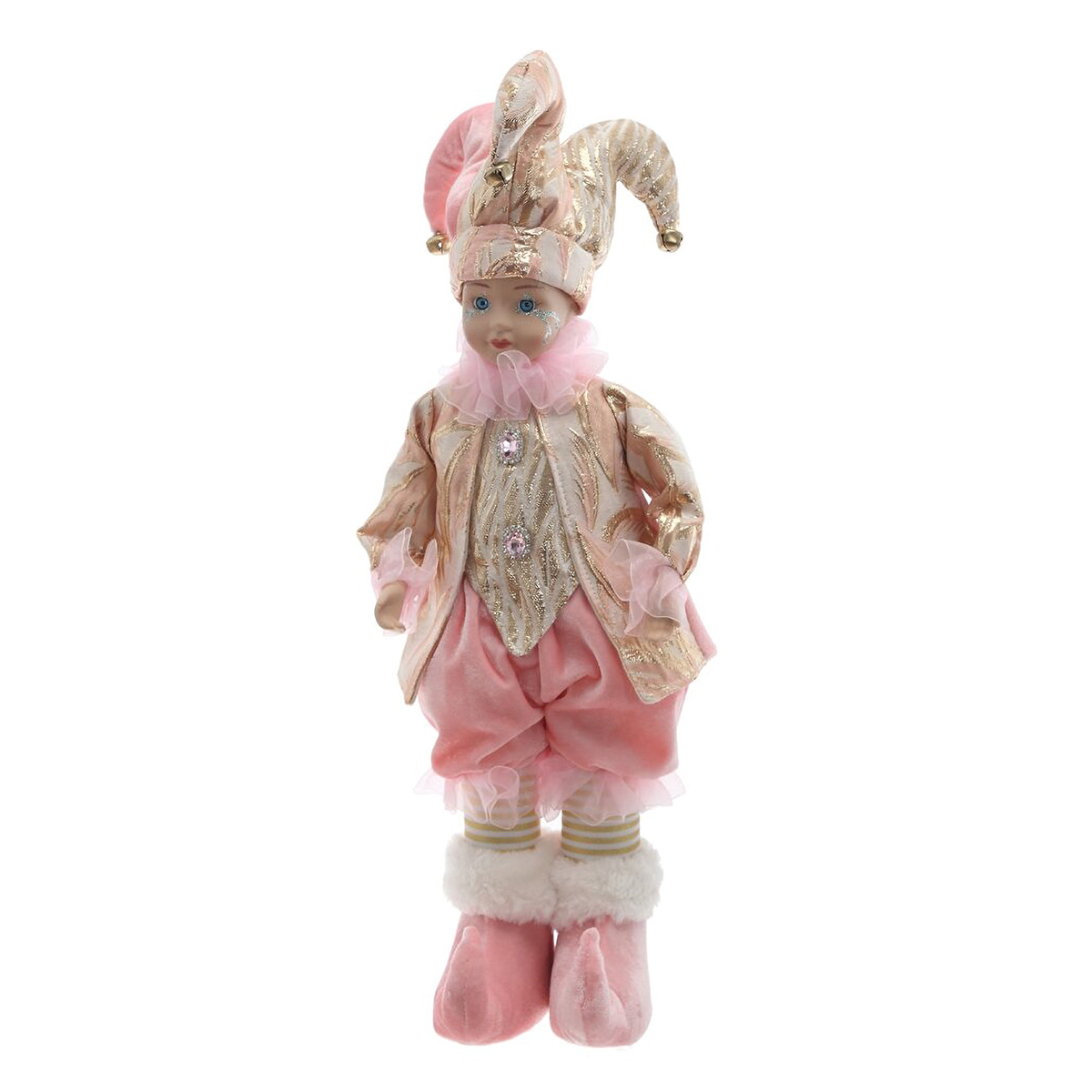 822856Игрушка набивная "Клоун"[муз, движ], L17 W14 H48 смНабивная игрушка «Клоун» — изящная интерьерная кукла с музыкальным и движущимся механизмом. Клоун одет в костюм нежных розово?золотых оттенков: высокий шутовской колпак с бубенчиками, жакет с блестящим узором и декоративными камнями, пышные шаровары и мягкие сапожки с меховой отделкой. На шее — воздушное розовое жабо. Заводной ключ запускает мелодию и плавные движения, создавая атмосферу праздника. Идеален для коллекции и декора, требует бережного ухода.