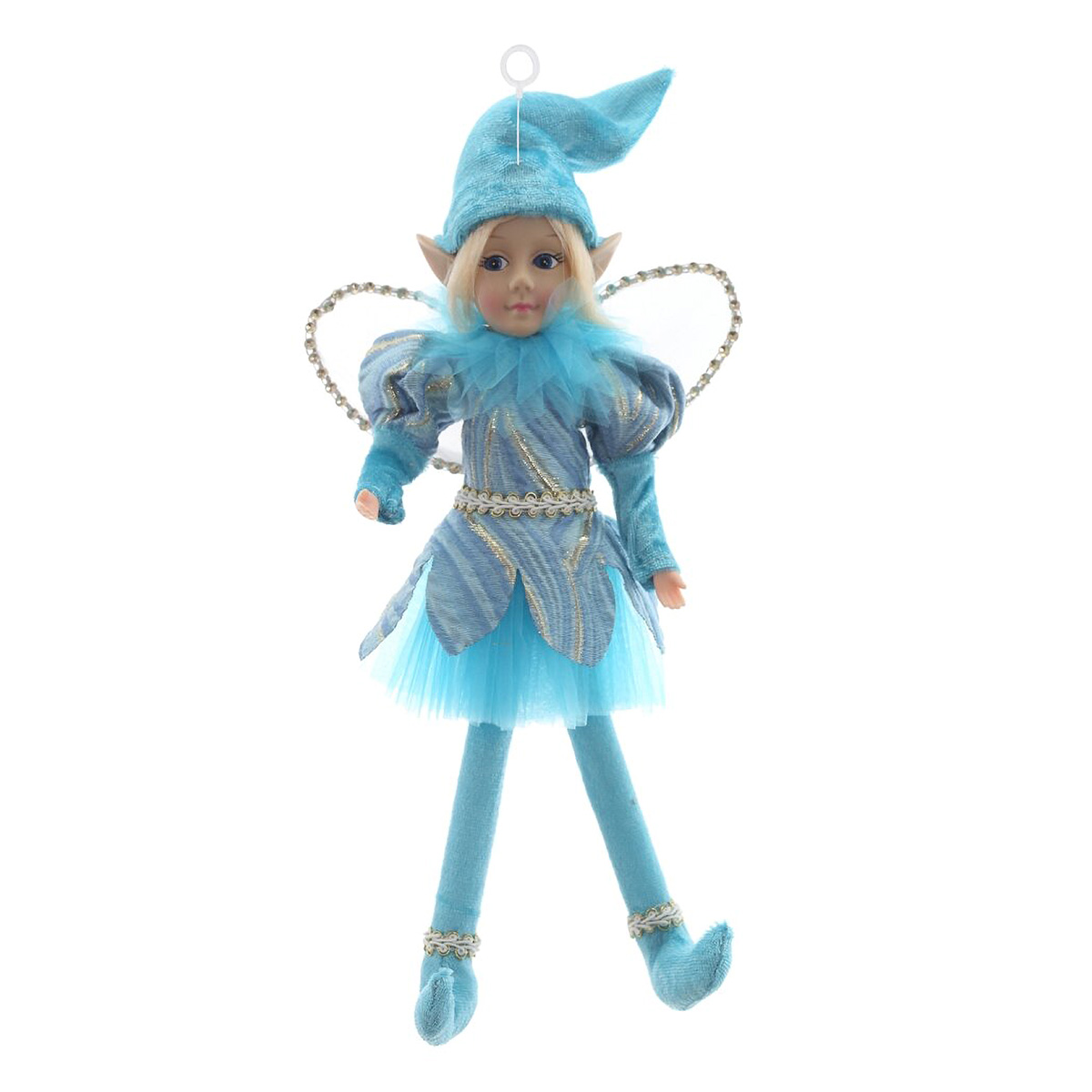 822888Игрушка набивная подвесная "Эльф", L15 W6 H34 см [полка 16 см.]Набивная игрушка «Эльф» в небесно?голубой гамме. У персонажа заострённые ушки, светлые волосы и аккуратно прорисованное личико. Он одет в мягкое нарядное платье с тонкими золотистыми полосками и многослойной фатиновой юбкой; пышные рукава и изящный пояс подчёркивают сказочный образ. За спиной — прозрачные крылышки с декоративной окантовкой, на голове — высокий колпачок. Длинные мягкие ножки и туфельки с загнутыми носами придают шарм. На макушке расположена петля для подвешивания: эльф легко станет украшением новогодней ёлки, гирлянды или детской комнаты, создавая атмосферу тепла и праздника.