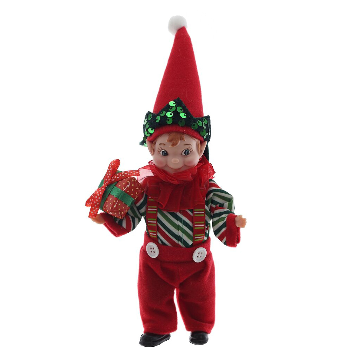 822897Игрушка набивная подвесная "Эльф", L10 W5,5 H26 смНабивная игрушка «Эльф» — очаровательный новогодний персонаж в традиционной красно?зелёной гамме. У него милое личико с озорным взглядом, высокий красный колпак с белым помпоном и зелёный ободок, украшенный сияющими пайетками. Эльф одет в полосатую рубашку с яркими подтяжками и красные брючки с крупными белыми пуговицами. В руке он держит миниатюрный подарочек в красной бумаге с бантом и зелёной лентой. Мягкая набивка делает игрушку приятной на ощупь, а аккуратные детали придают ей праздничный характер. Идеален для декора под ёлкой, на камине или полке, а также в качестве милого сувенира к зимним праздникам.
