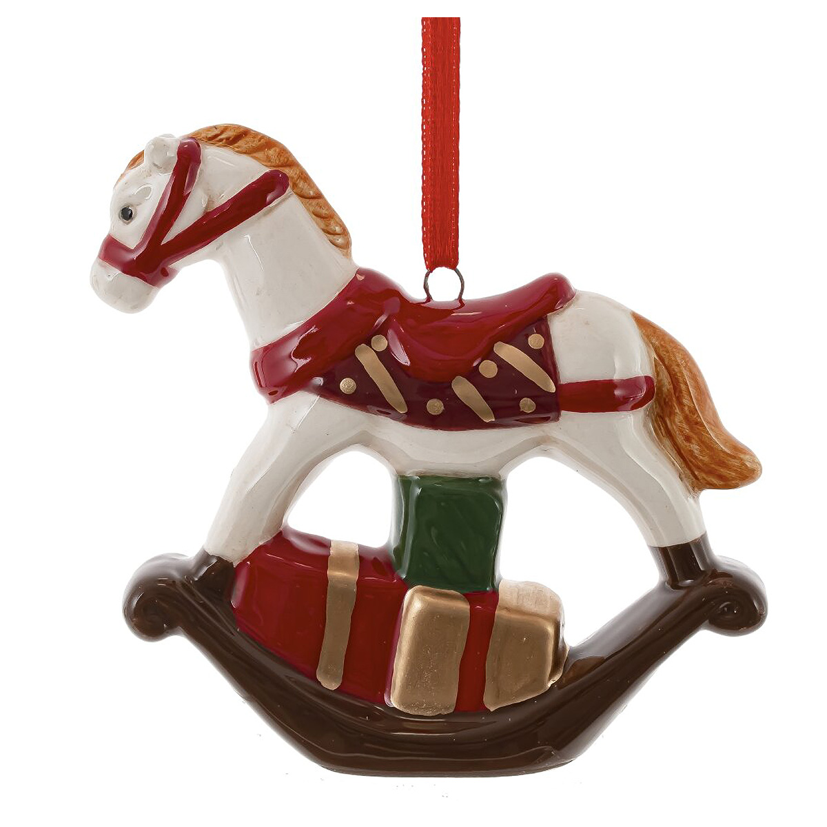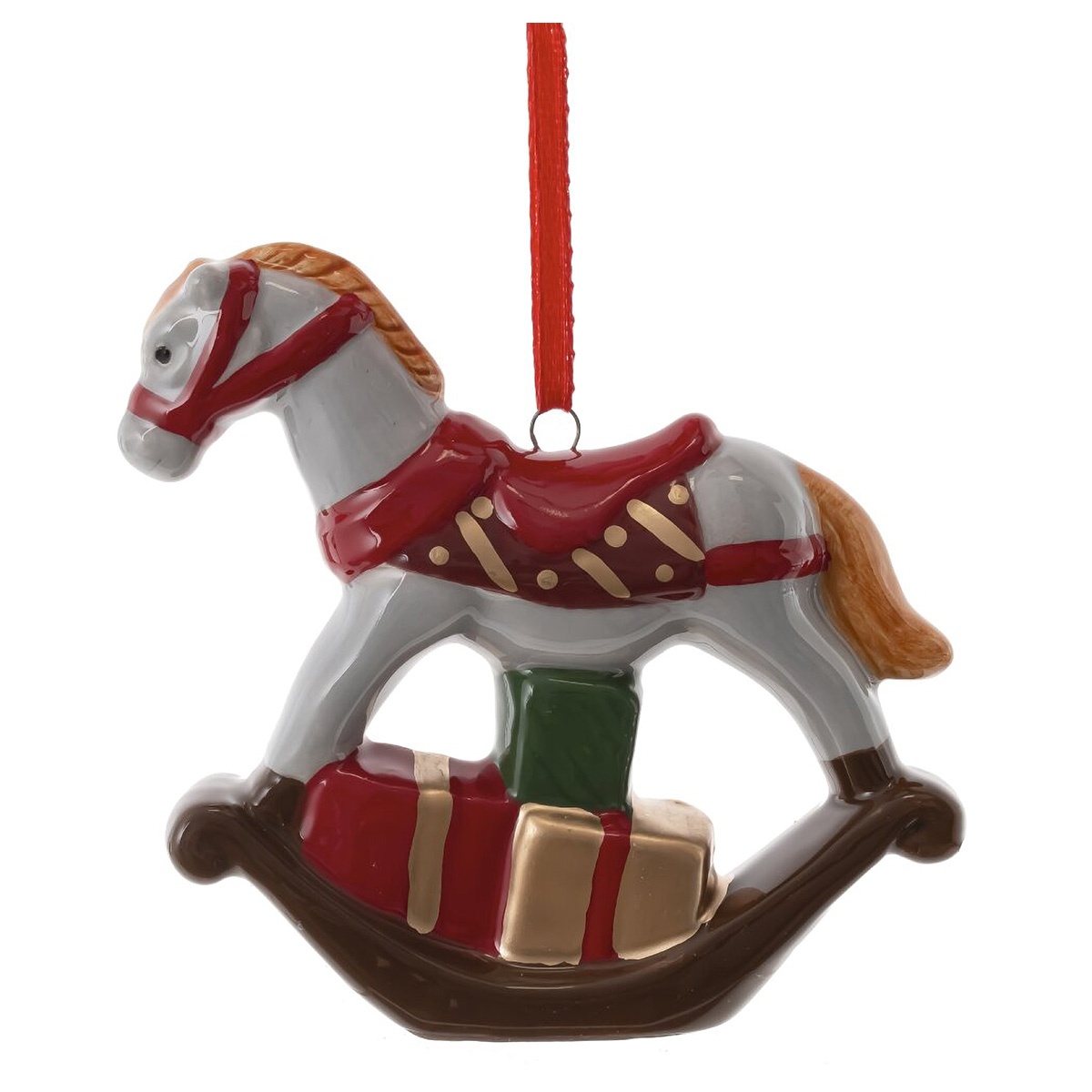 822961Фигурка декоративная подвесная "Лошадка", L9 W3 H9 см, 2в.Ощутите волшебство Нового года с изысканной декоративной подвеской "Лошадка"! Эта очаровательная фигурка из лёгкой керамики, выполненная в виде лошадки-качалки, груженной праздничными подарками, добавит тепла и уюта вашему празднику. Доступна в нежных оттенках: элегантный серый или белый. Подойдет в качестве подарка, напоминающем о детских сказках и семейных традициях. Этот аксессуар оживит атмосферу праздника, зажигая искру новогоднего чуда. Не упустите шанс обрести кусочек праздничного счастья!