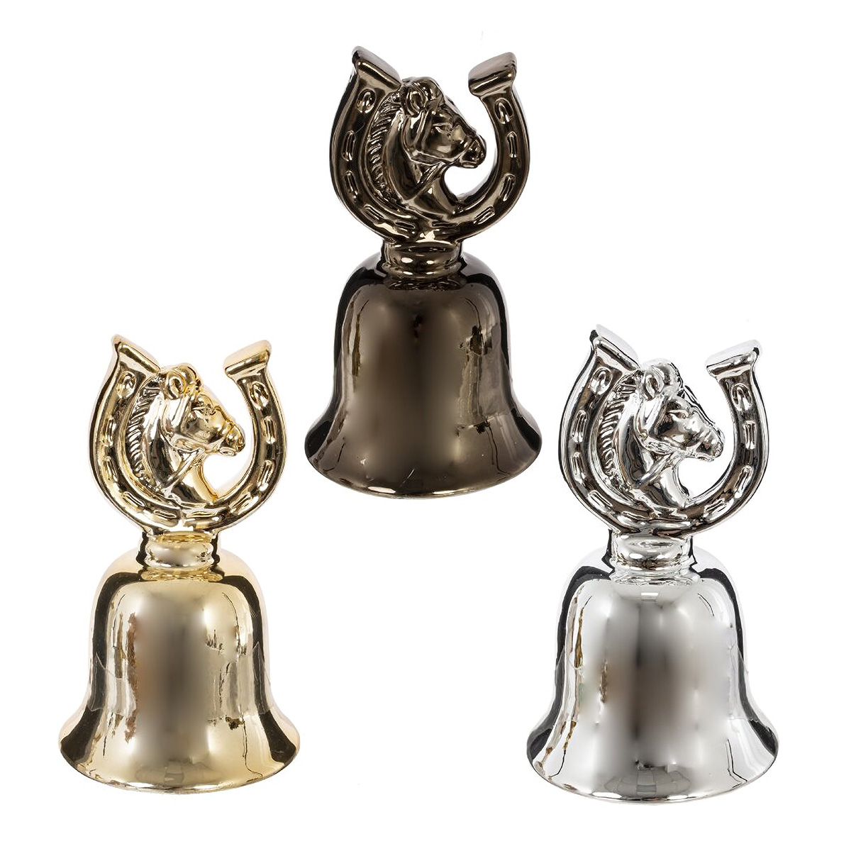 823542Колокольчик "Лошадь", L6,5 W6,5 H11 см, 3в.Элегантный фарфоровый колокольчик с фигуркой лошадки — это стильный декоративный аксессуар, который станет изысканным акцентом в интерьере и прекрасным символом праздника. Изделие выполнено из качественного фарфора и окрашено под металл, благодаря чему оно выглядит благородно и эффектно, словно литое из бронзы или серебра. Фигурка лошадки, украшающая верхушку колокольчика, символизирует силу, движение вперёд и удачу, делая этот предмет не только красивым, но и наполненным смыслом. Такой аксессуар станет отличным украшением для дома в преддверии новогодних и рождественских праздников, а также прекрасным сувениром или подарком для близких. Он гармонично впишется в классический и современный интерьер, придавая пространству тепло и уют. Лёгкий звон колокольчика создаёт атмосферу уюта и ожидания чуда.