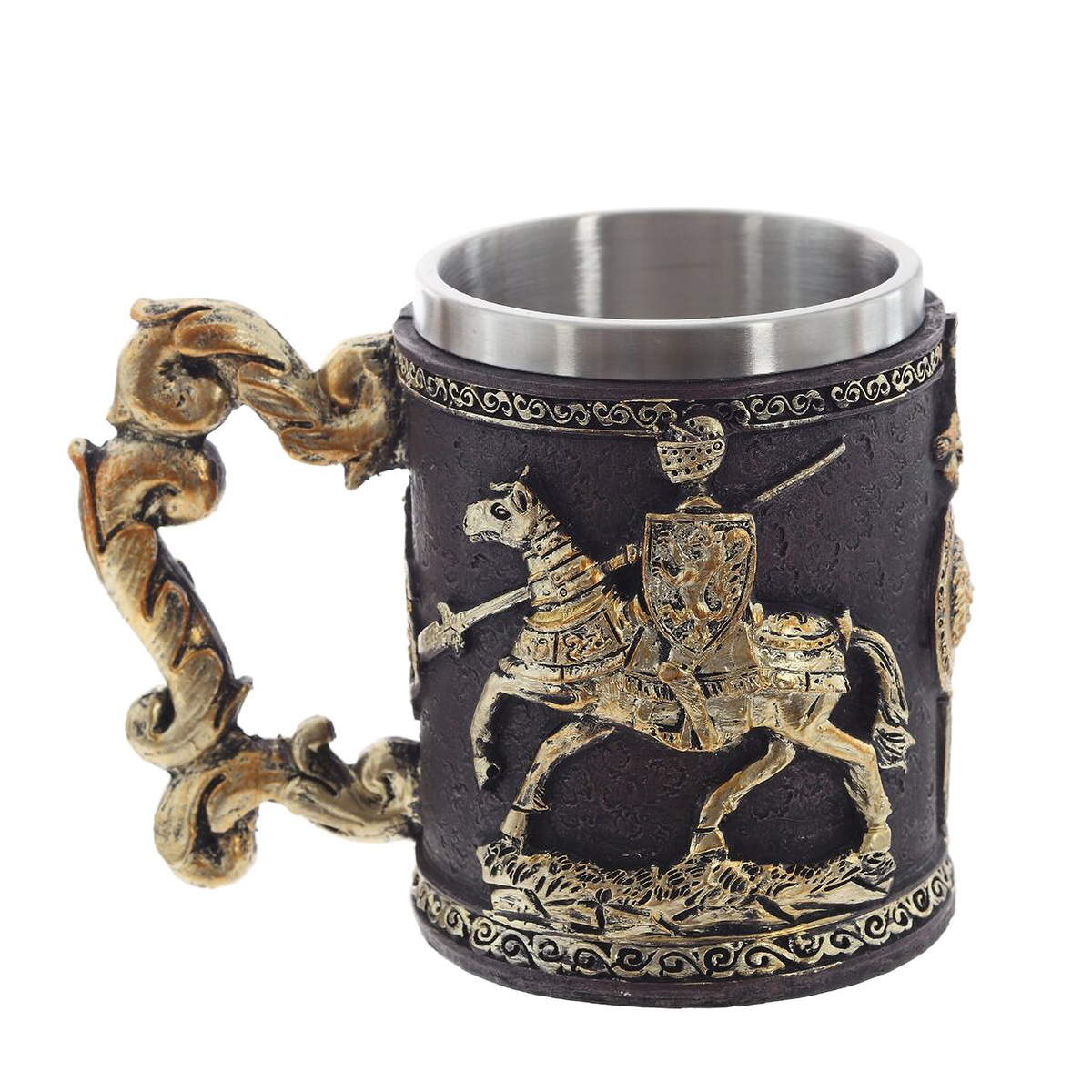 823575Кружка "Рыцарь на лошади", 445 мл, L15 W10 H11,5 смЭффектная кружка «Рыцарь» создана для тех, кто ценит атмосферу средневековья и необычные детали интерьера. Внутренняя чаша выполнена из коррозионностойкой стали, поэтому не впитывает запахи, легко моется и подходит для горячих и холодных напитков. Наружная поверхность из прочных полимерных материалов украшена рельефным барельефом: всадник в доспехах на боевом коне, обрамлённый декоративными узорами. Фигурная массивная ручка комфортно лежит в руке и подчёркивает стиль изделия. Объём 445 мл — оптимален для чая, кофе, кваса или пенного напитка. Кружка станет выразительным подарком и ярким акцентом на рабочем столе или в домашнем баре. Рекомендован ручной уход без жёстких абразивов и машинной мойки.