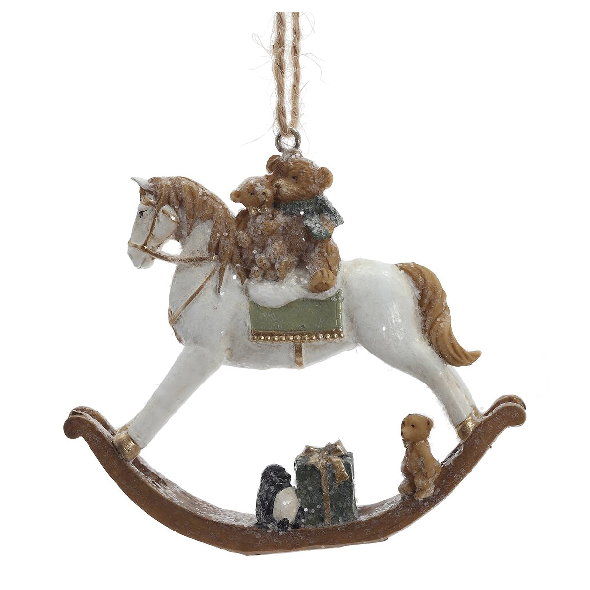 824225Фигурка декоративная подвесная "Лошадка-качалка", L8,5 W1,5 H7,5 смДекоративная фигурка "Лошадка-качалка" с подвесом — стильный и символичный элемент декора, который станет прекрасным подарком к Новому году или талисманом на удачу. Выполненная из полимерных материалов и окрашенная в белый цвет, фигурка символизирует энергию, силу и процветание. Лошадь традиционно ассоциируется с удачей и успехом в делах. Идеально подойдёт для оформления интерьера дома или офиса, а также станет оригинальным дополнением к новогодней композиции. Этот стильный сувенир будет радовать вас и ваших близких.
