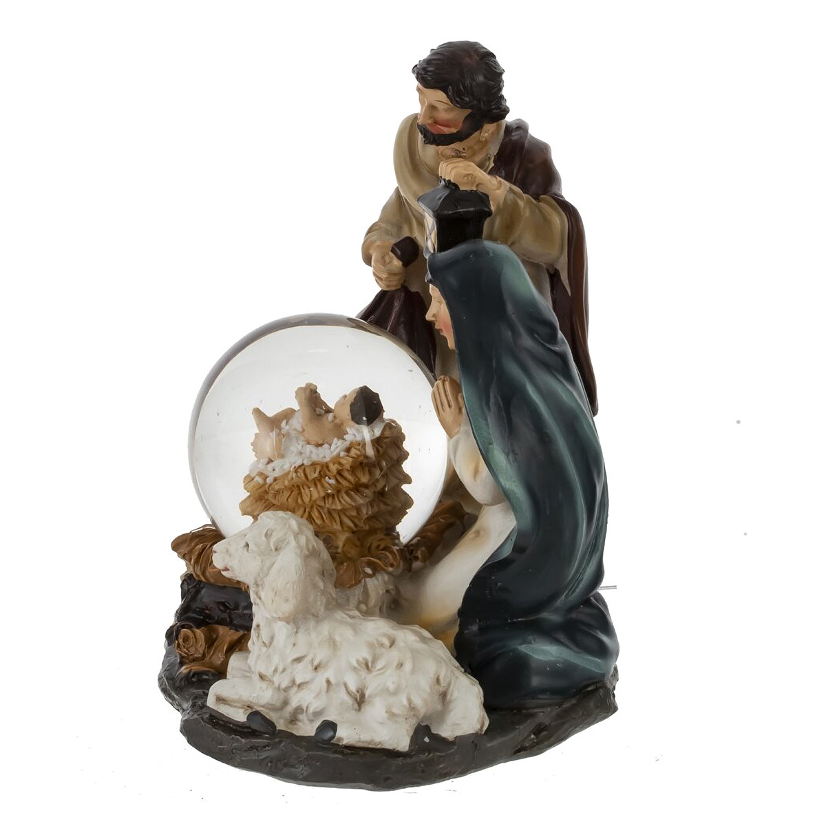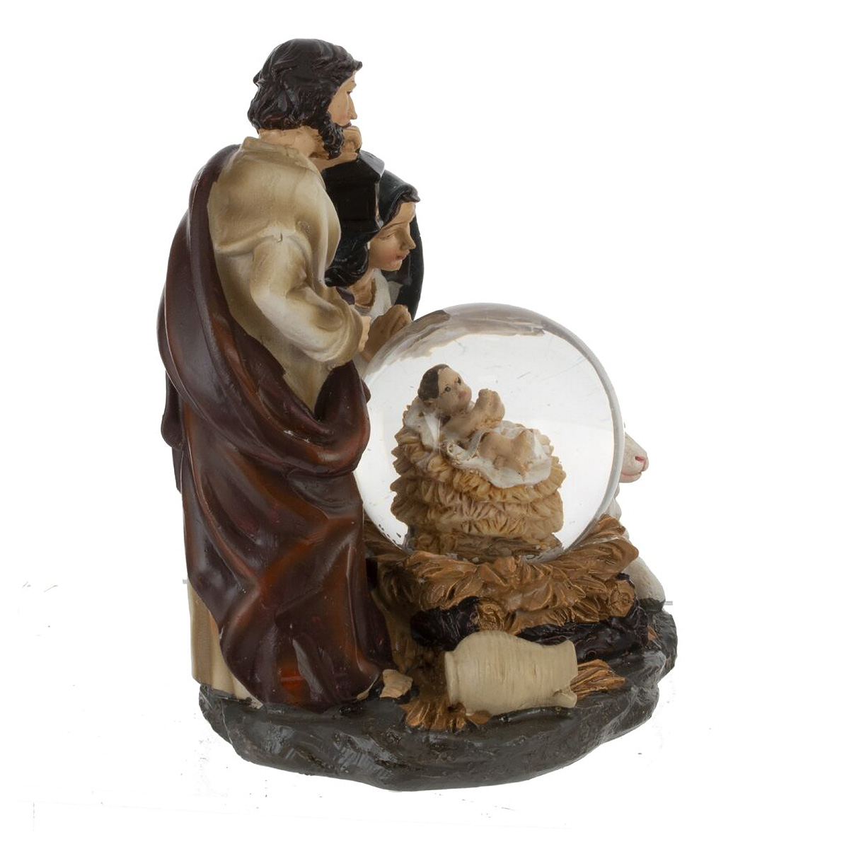 824839Фигурка декоративная "Рождество" в стекл шаре, L10 W8 H11 смДекоративная фигурка из полимерных материалов, стилизованная под рождественский вертеп. В центре композиции — прозрачный шар с младенцем в соломенной колыбели; рядом персонажи с фонарем и молитвенно сложенными руками, у основания лежит овечка. Тщательная роспись в мягких натуральных тонах, детально проработанные фактуры ткани, дерева и шерсти создают тёплый, камерный образ. Прочное полимерное основание устойчиво на полке или столе. Идеально для праздничного оформления дома, витрины или коллекции, станет душевным подарком и напомнит о семейном уюте.
