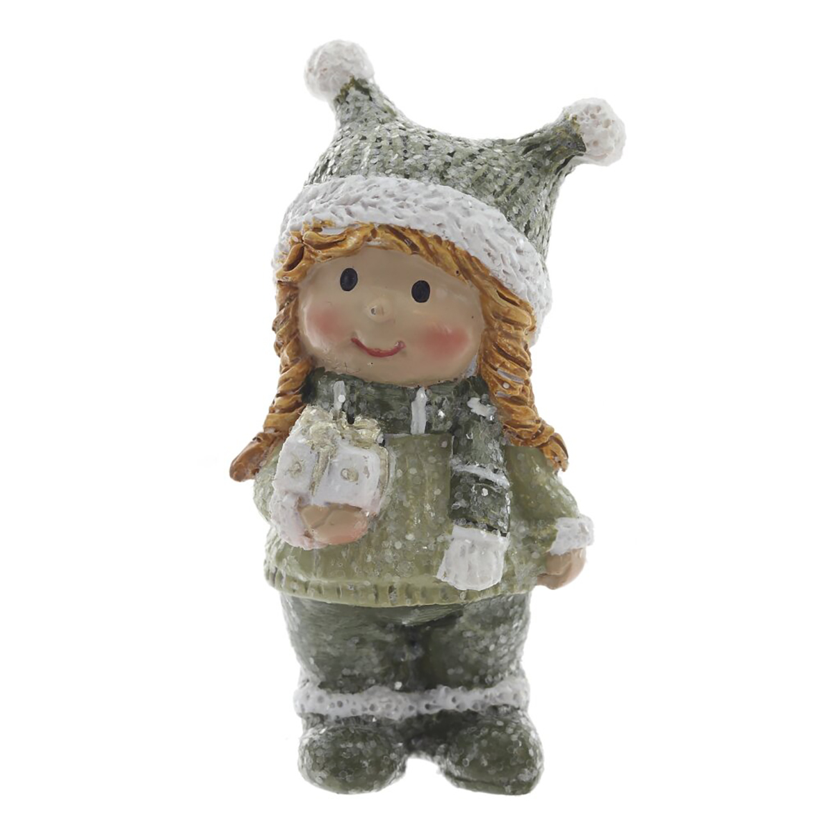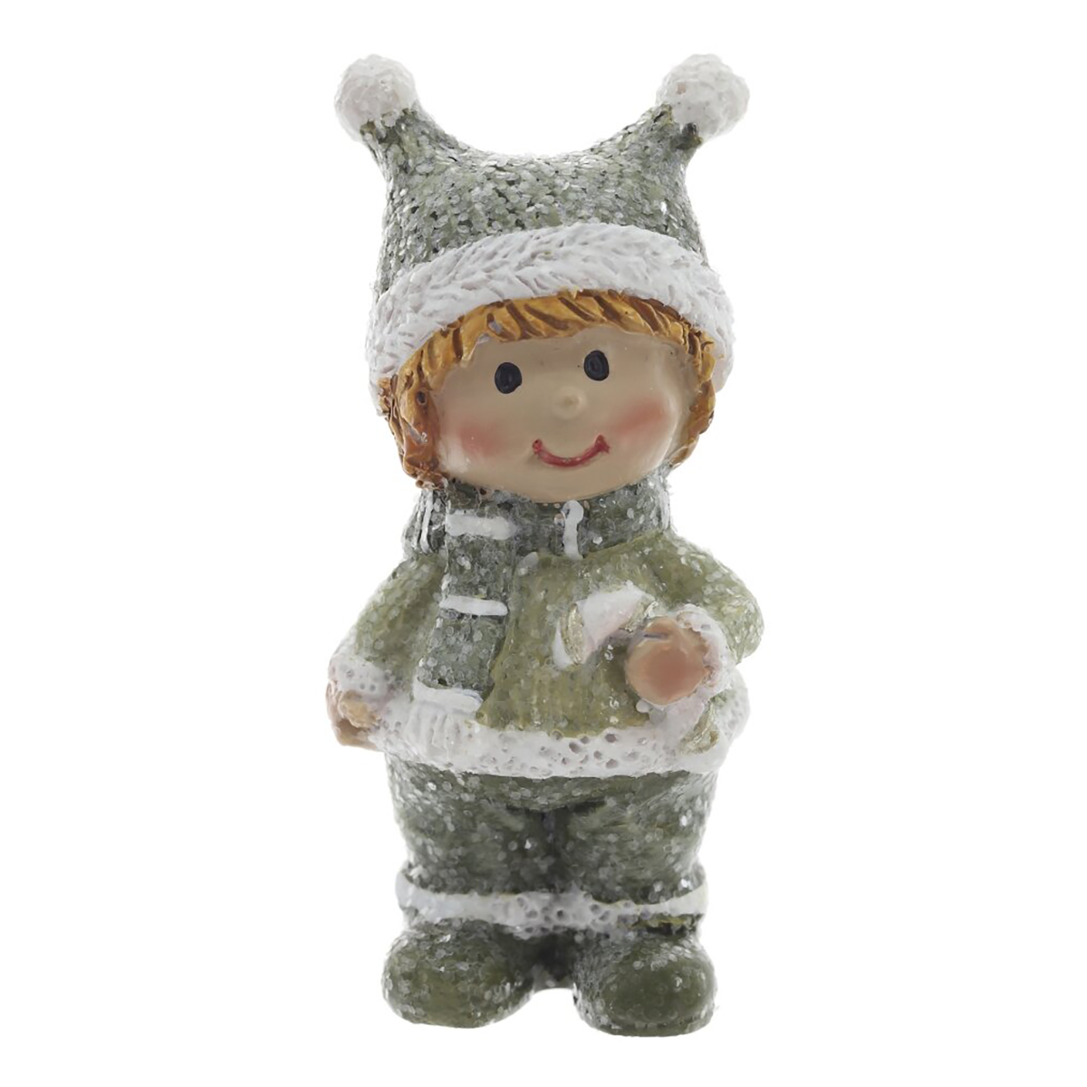 825058Фигурка декоративная "Дети", L2 W2,5 H6 см, 2в.Декоративная фигурка из полимерных материалов, выполненная в виде милого зимнего персонажа. Малыш в вязаной шапочке с двумя помпонами, в шарфике и свитере, теплых штанишках и ботинках. На лице мягкая улыбка и румяные щечки, в руке — леденец-петля с золотистыми акцентами. Поверхность имеет легкую «снежную» фактуру, создающую эффект инея. Компактная и устойчивая, фигурка станет уютным акцентом на полке, каминной полке или рабочем столе, подойдет для новогодних композиций, подарочных наборов и зимнего декора дома. Полимер прочный, детали аккуратно прорисованы, цвета нежные и праздничные. Представлено в двух вариантах.