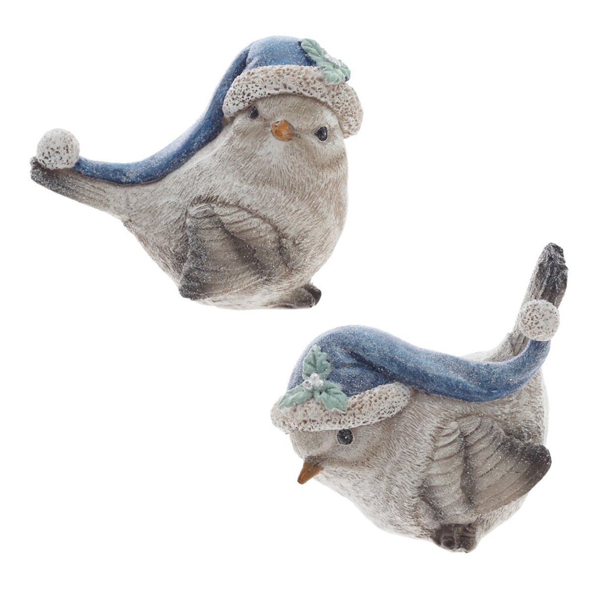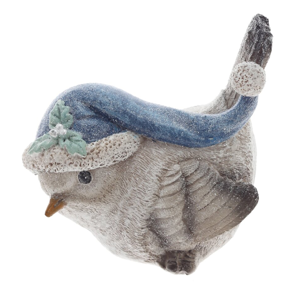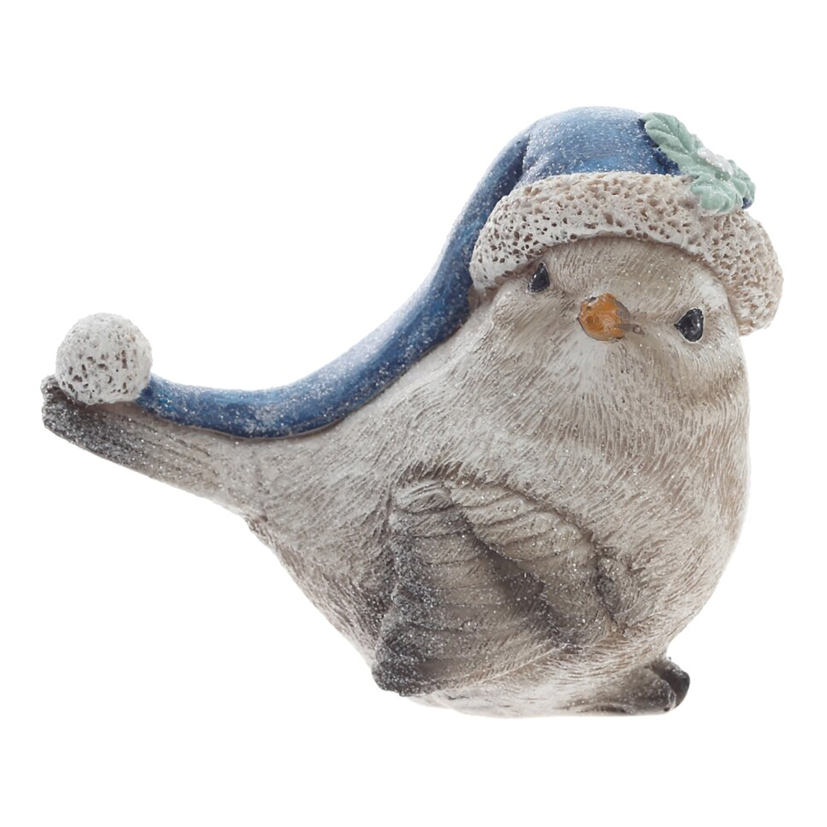 825076Фигурка декоративная "Птичка", L9,5 W5 H8 см, 2в.Декоративная фигурка из полимерных материалов в виде милой зимней птички. Серо-бежевый окрас с тщательно проработанным оперением дополнен длинной синей шапкой с белым помпоном; по краю — «меховой» кант с листочками и ягодками, создающими новогодний акцент. Поверхность будто припорошена инеем, что придает изделию легкое сияние. Фигурка компактная и устойчива, отлично смотрится на полке, подоконнике, каминной полке или в витрине, легко вписывается в классический и сканди-интерьер. Прекрасно дополняет зимние композиции с еловыми ветками, свечами и гирляндами, подходит в качестве небольшого подарка или атмосферного декора к праздникам. Представлено в двух вариантах.