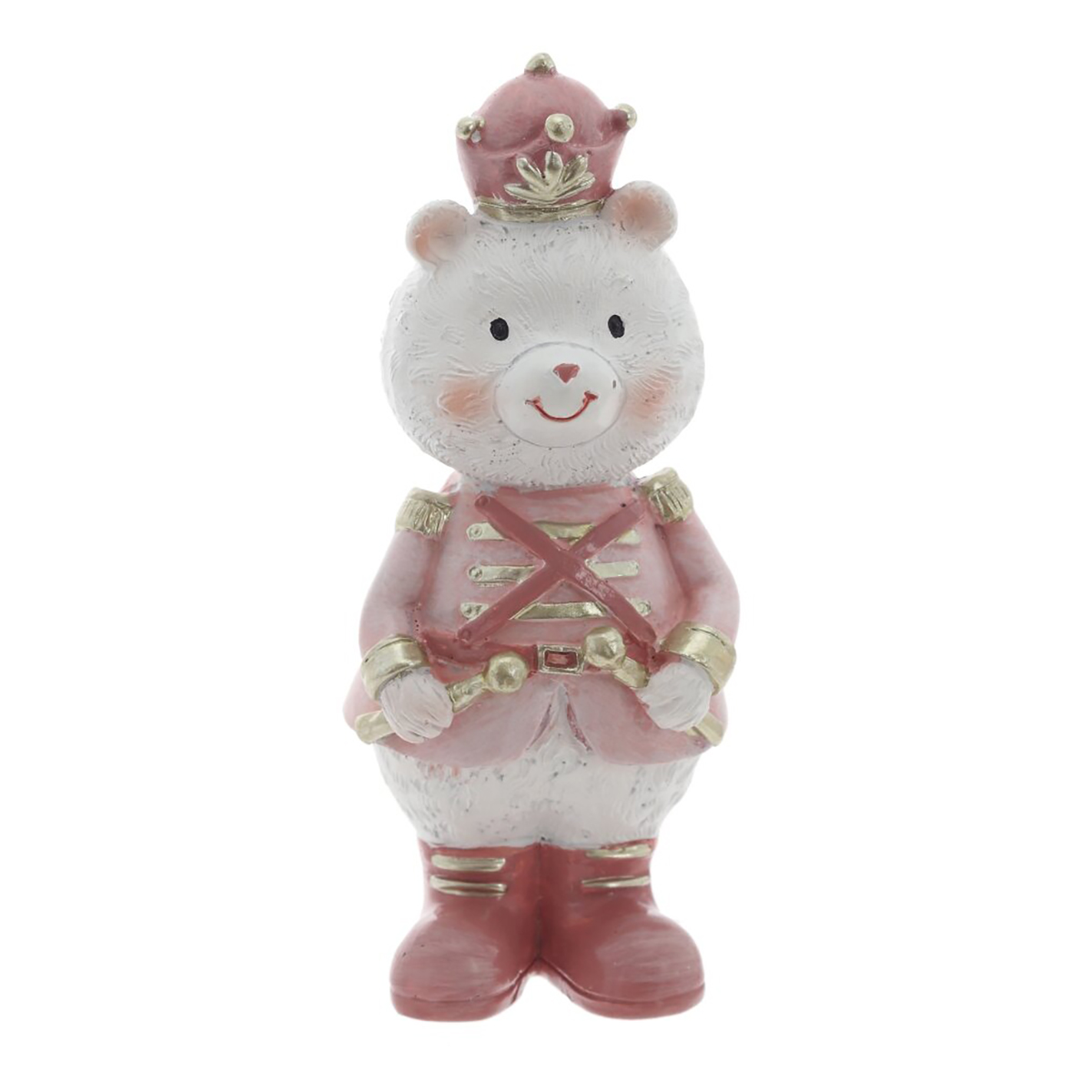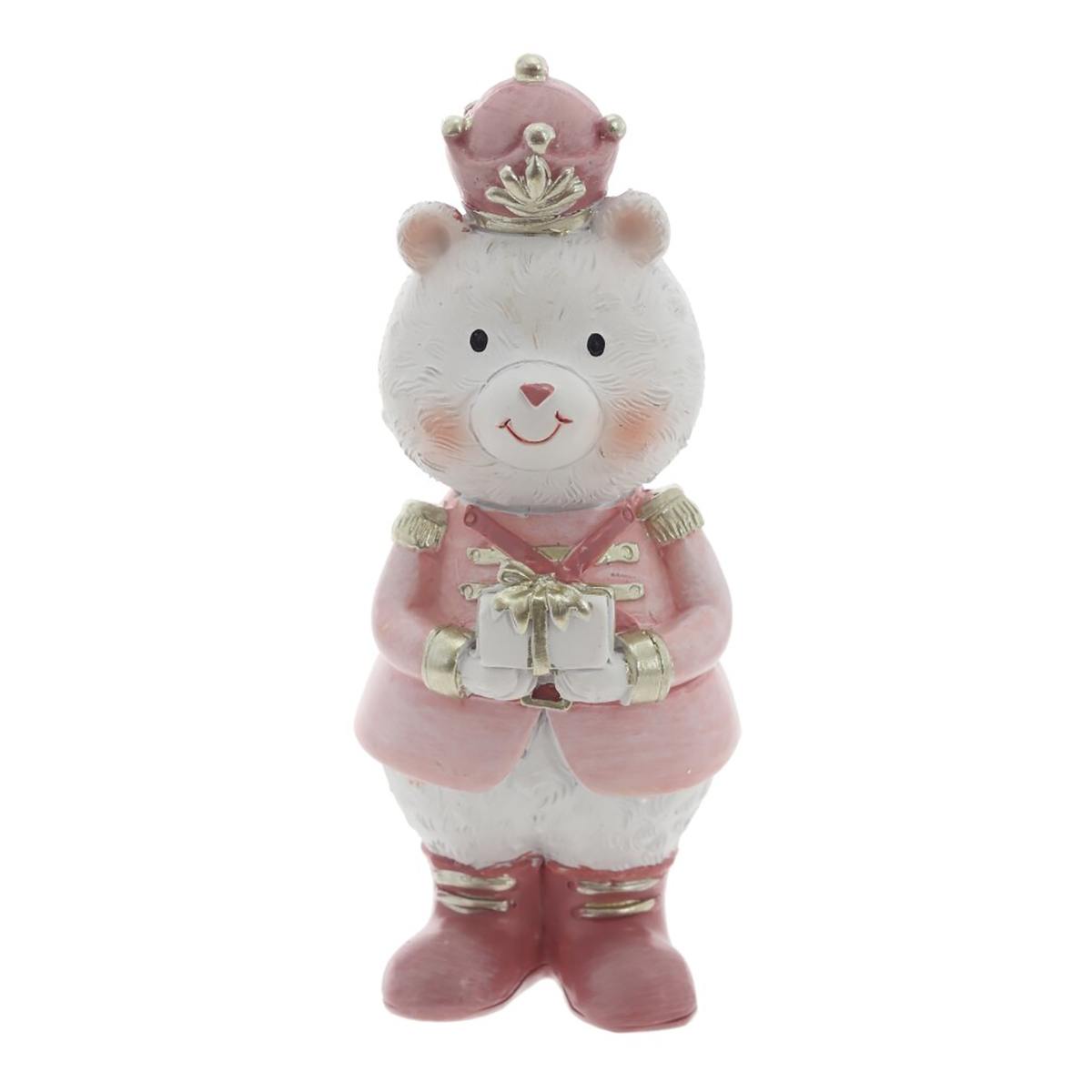 825128Фигурка декоративная "Медвежонок", L4 W4 H10 см, 2в.Декоративная фигурка из полимерных материалов в виде очаровательного медвежонка в парадной форме. Он одет в мундир с золотыми погонами и манжетами, на голове фуражка с декоративным элементом, на ногах сапоги с аккуратными полосками. В лапках медвежонок держит небольшой подарок, перевязанный лентой. Мягкие черты мордочки, румянец и аккуратная роспись придают образу доброжелательное, праздничное настроение. Фигурка легкая, устойчиво стоит на ровной поверхности и станет милым акцентом для новогоднего и всесезонного оформления полки, каминной полки, стола или детской. Отличный сувенир для коллекционеров и поклонников сказочных персонажей, не требует особого ухода — достаточно бережно протирать от пыли сухой салфеткой. Представлено в двух вариантах.