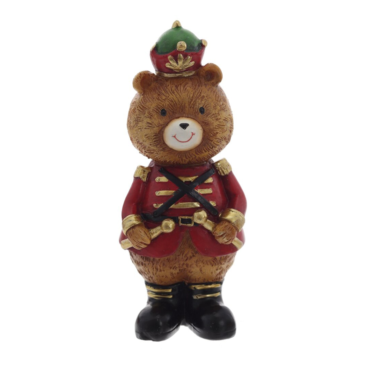 825129Фигурка декоративная "Медвежонок", L4 W4 H10 см, 2в.Декоративная фигурка из полимерных материалов в виде очаровательного медвежонка в парадной форме. Он одет в мундир с золотыми погонами и манжетами, на голове фуражка с декоративным элементом, на ногах сапоги с аккуратными полосками. В лапках медвежонок держит небольшой подарок, перевязанный лентой. Мягкие черты мордочки, румянец и аккуратная роспись придают образу доброжелательное, праздничное настроение. Фигурка легкая, устойчиво стоит на ровной поверхности и станет милым акцентом для новогоднего и всесезонного оформления полки, каминной полки, стола или детской. Отличный сувенир для коллекционеров и поклонников сказочных персонажей, не требует особого ухода — достаточно бережно протирать от пыли сухой салфеткой. Представлено в двух вариантах.
