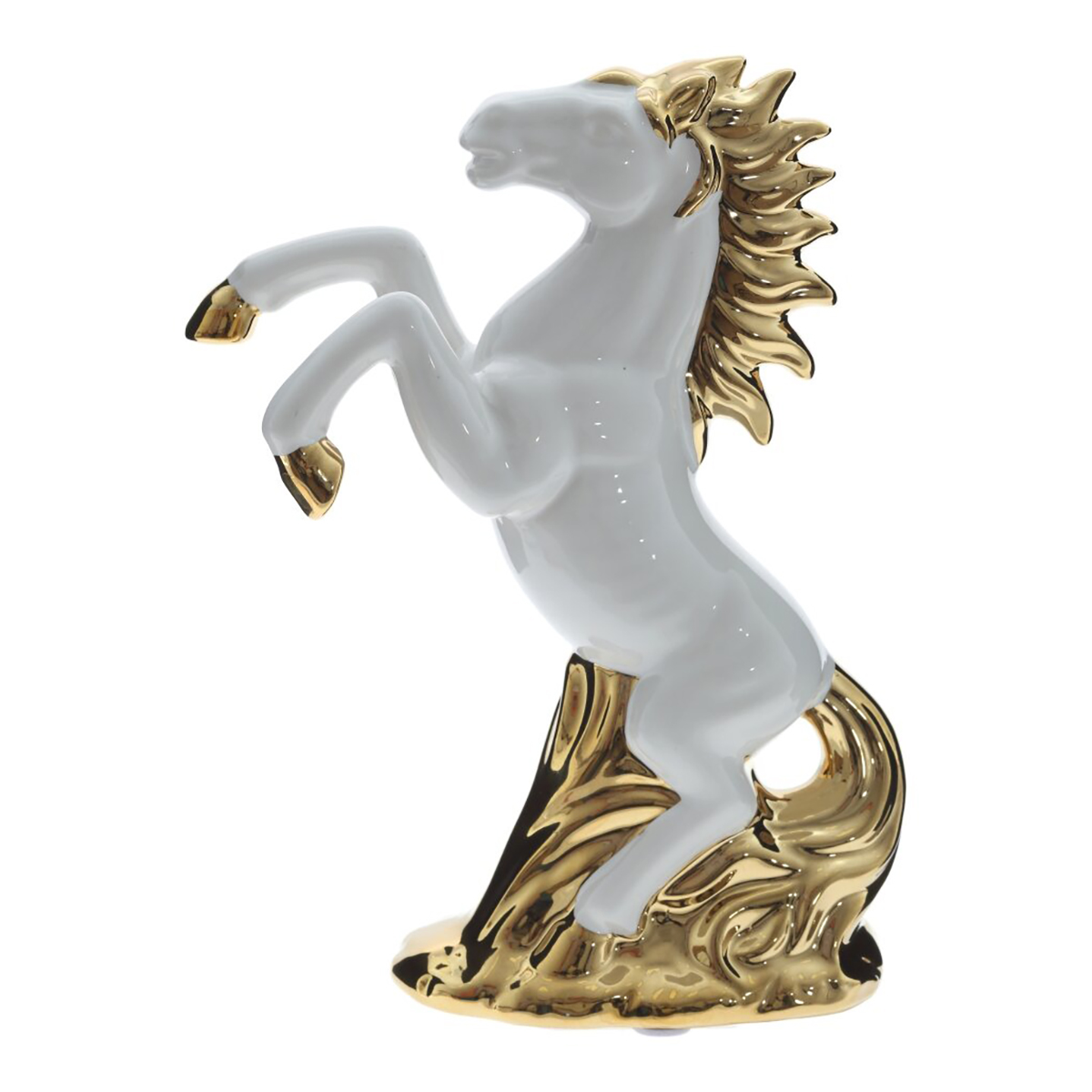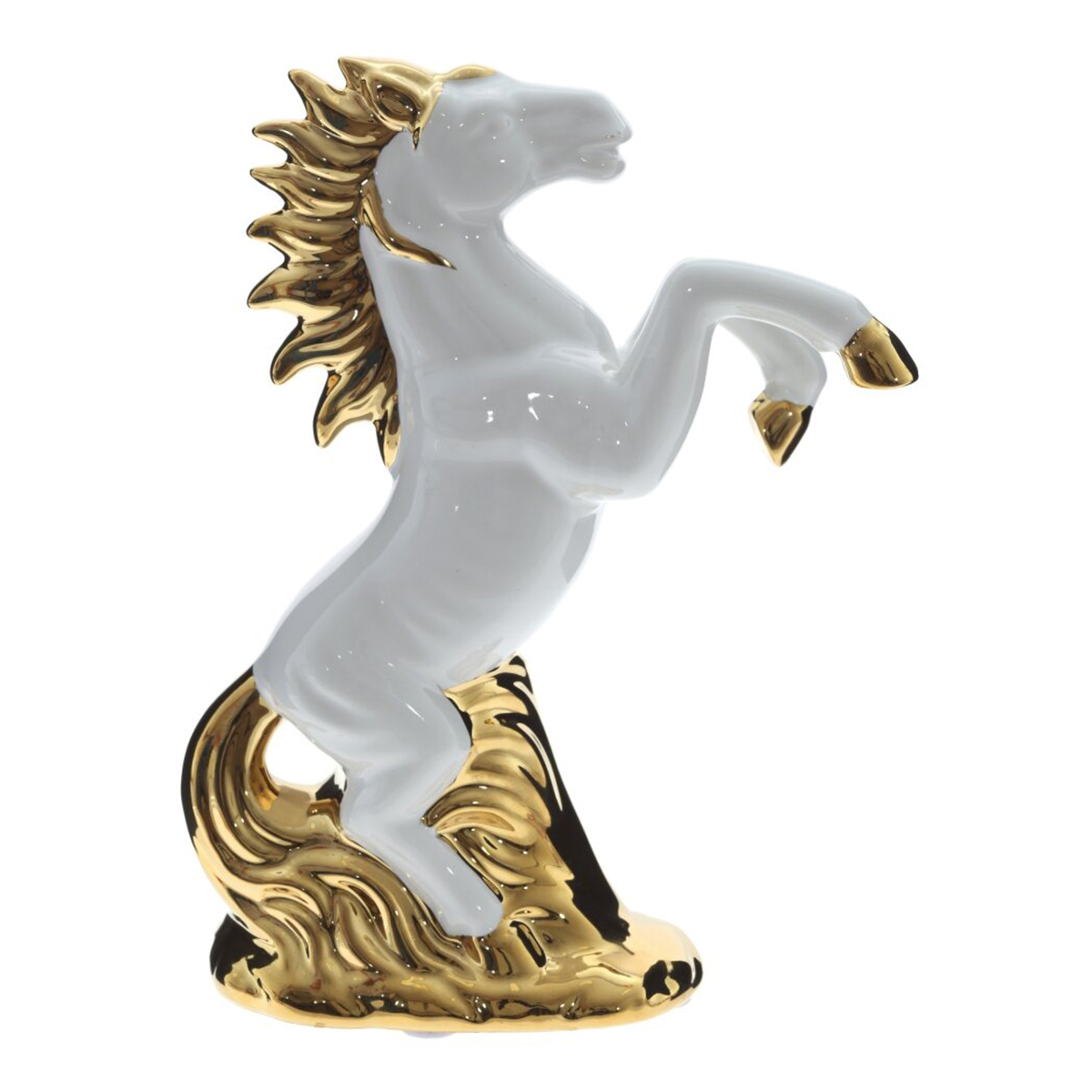 825302Фигурка декоративная "Лошадь", L15 W6 H20,5 смДекоративная фигурка "Лошадь" — элегантная статуэтка из керамики в белом глянцевом цвете с золотой гривой и хвостом, воплощающая символ 2026 года! В динамичной позе курбета лошадь словно парит в воздухе полная грации и силы. Это не просто украшение — идеальный подарок для любителей лошадей, коллекционеров или близких, символизирующий удачу, энергию и новые начала. Упакована в надежную картонную коробку с пузырчатой пленкой для безопасной доставки. Пусть эта лошадка вдохновляет вас на великие свершения в году Лошади!
