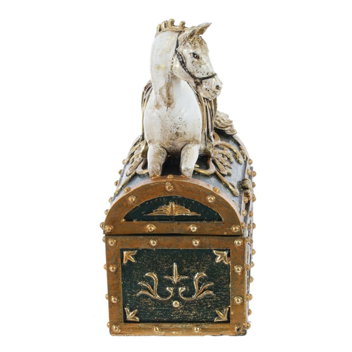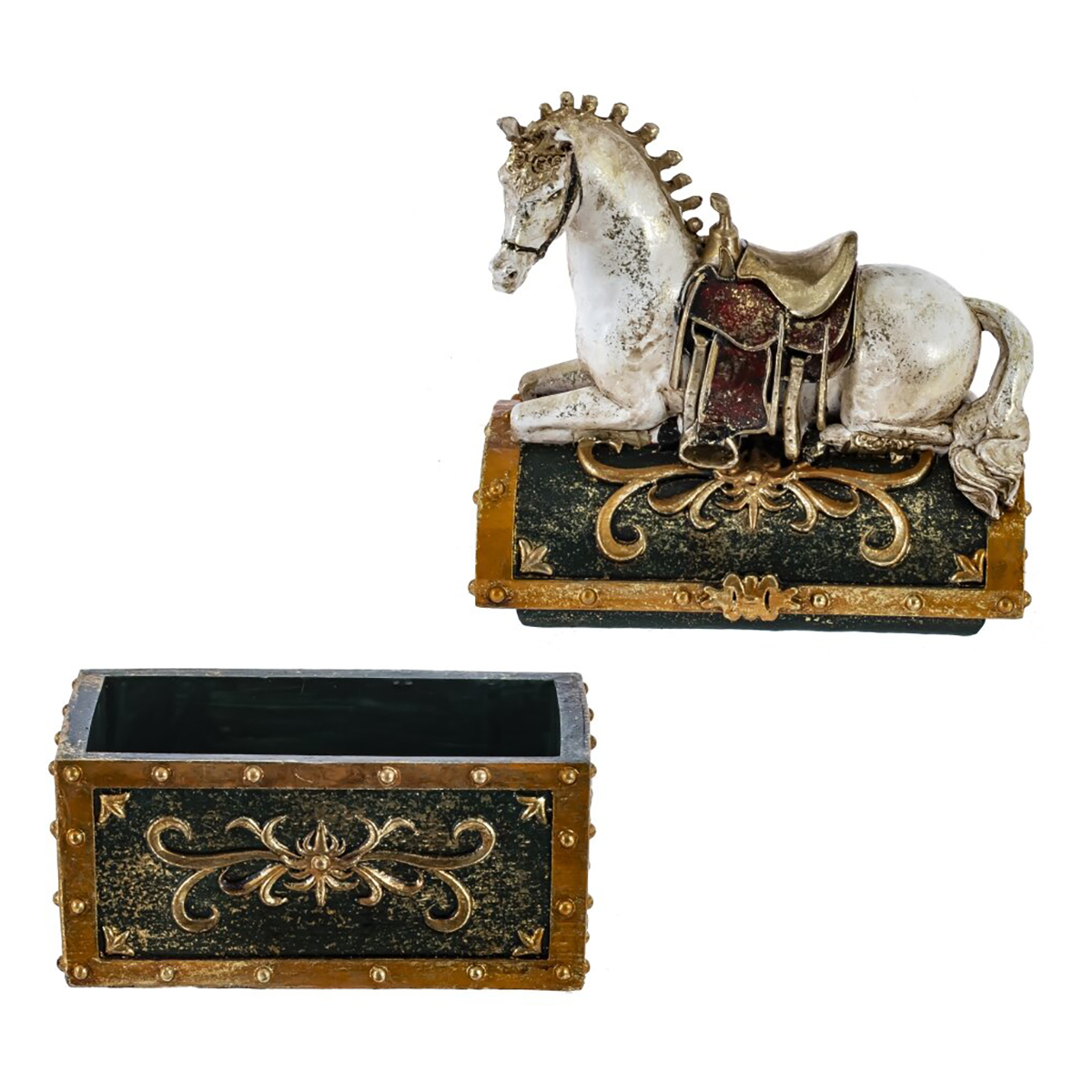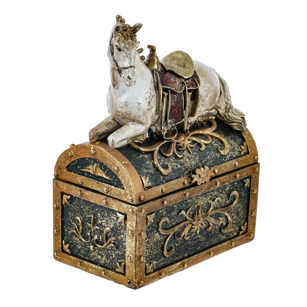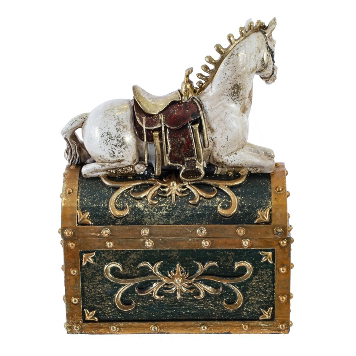 825438Шкатулка "Лошадь", L14,5 W9 H20 смДекоративна шкатулка, декорированная фигуркой лошади на крышке — это изящный и стильный аксессуар, который украсит любой интерьер и добавит ему нотку благородства. Выполненный в благородном цвете, он отличается утончённым дизайном и гармоничными линиями, олицетворяющими грацию и силу этого благородного животного. Лошадь — символ энергии, стремления вперёд и удачи, а потому такой элемент декора может стать не только украшением, но и талисманом для дома. Это стильное изделие украсит полку, камин, туалетный столик или станет оригинальным подарком. Его можно использовать как самостоятельный элемент декора или в сочетании с другими аксессуарами в едином стиле. Это сочетание красоты и символизма будет радовать глаз каждый день.