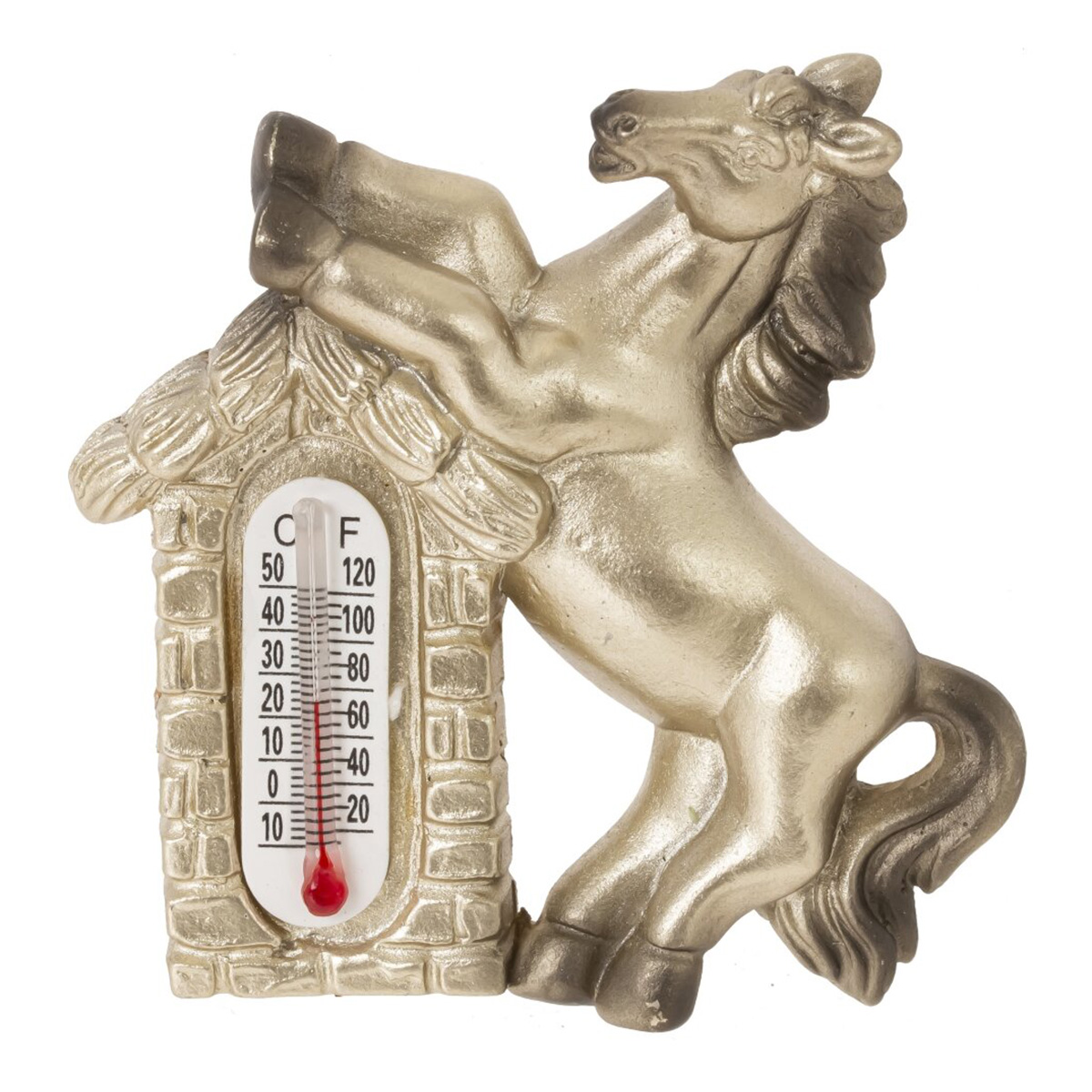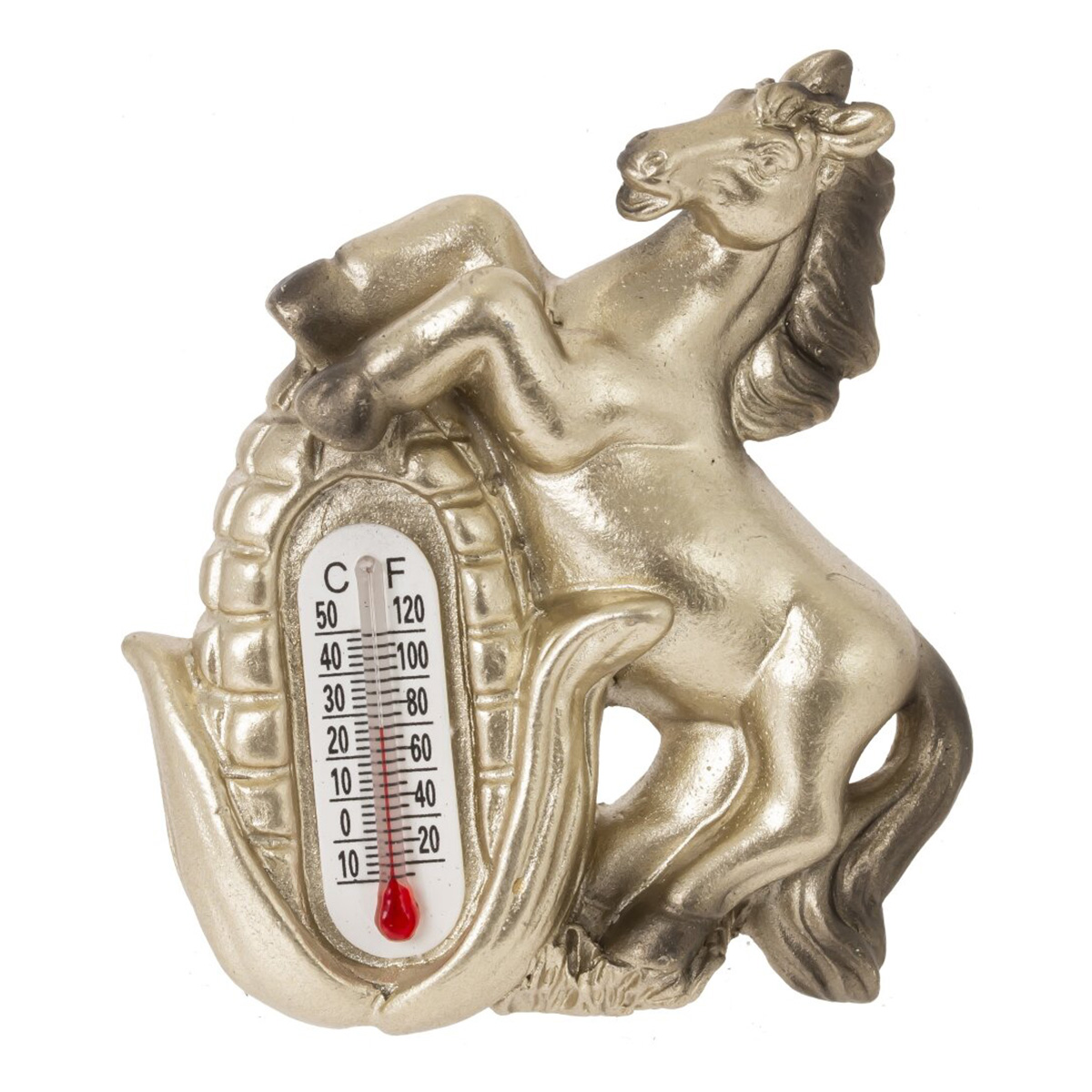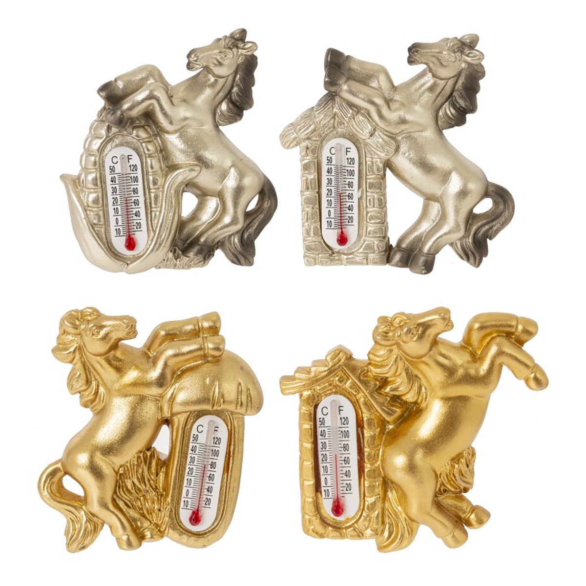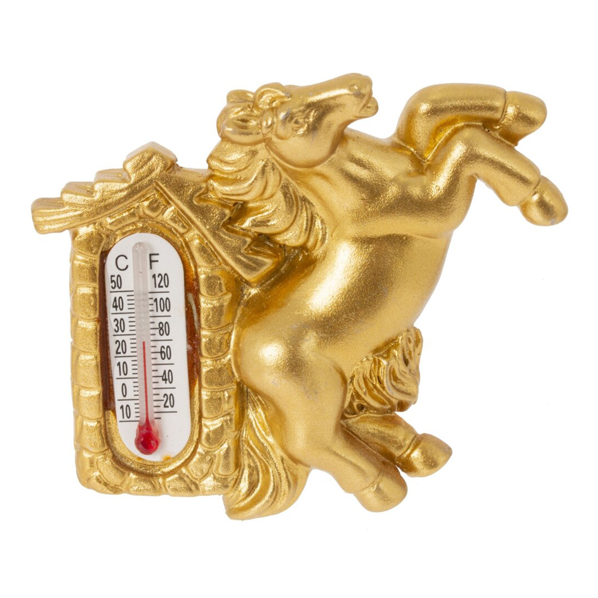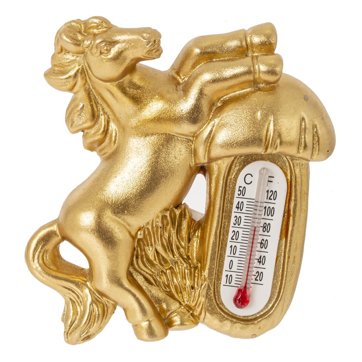 826198Магнит с термометром "Лошадка", L5 W1,5 H6 см, 4в.Магнит «Лошадка» — стильный сувенир и практичный аксессуар для дома. Фигурка лошади выполнена из полимерных материалов и эффектометаллизированного покрытия, рельеф детально проработан: грива, хвост, приподнятые передние ноги. В корпус аккуратно встроен термометр со шкалами °C и °F, который помогает контролировать температуру в кухне, прихожей или офисе. Магнит надёжно крепится к дверце холодильника, доске или другой металлической поверхности, не занимает много места и легко очищается сухой салфеткой. Лошадь считается сильным и удачливым символом года, поэтому такой магнит подойдёт для новогоднего подарка, пополнит коллекцию сувениров и станет выразительным акцентом интерьера. Представлено в четырех вариантах.