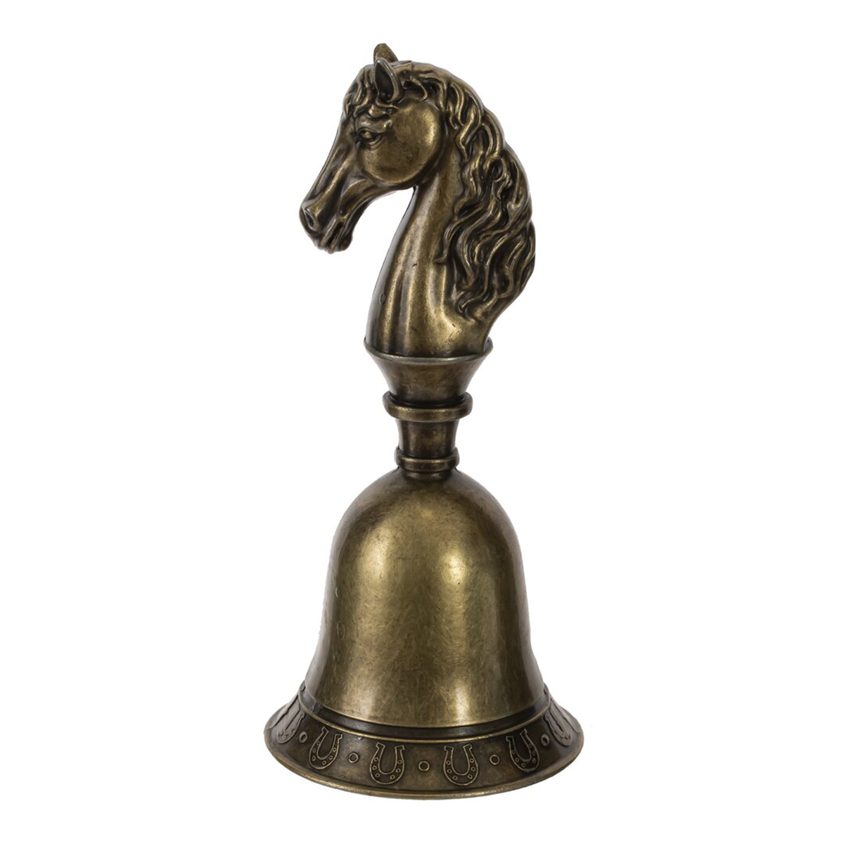 826627Колокольчик "Лошадь", L5,5 W5,5 H12 смЭлегантный металлический колокольчик с фигуркой лошадки — это стильный декоративный аксессуар, который станет изысканным акцентом в интерьере и прекрасным символом праздника. Изделие выполнено из качественного металла , благодаря чему оно выглядит благородно и эффектно. Фигурка лошадки, украшающая верхушку колокольчика, символизирует силу, движение вперёд и удачу, делая этот предмет не только красивым, но и наполненным смыслом. Такой аксессуар станет отличным украшением для дома в преддверии новогодних и рождественских праздников, а также прекрасным сувениром или подарком для близких. Он гармонично впишется в классический и современный интерьер, придавая пространству тепло и уют. Лёгкий звон колокольчика создаёт атмосферу уюта и ожидания чуда.