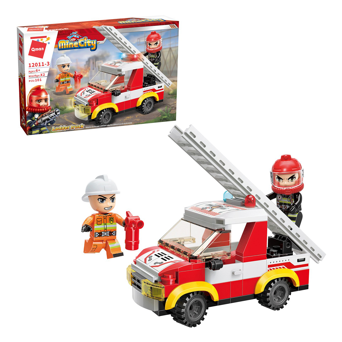 Конструктор QMAN из серии «MineCity» позволит ребенку собственными руками собрать модель пожарной машины с выдвижной лестницей. Дополняют набор 2 фигурки: фигурка пожарного в экипировке, с защитным шлемом на голове и фигурка водителя. Простое и надежное соединение деталей разных размеров и форм между собой обеспечат специальные крепления. Во время игры ребенок сможет задействовать свою фантазию и придумать интересные сценарии. В процессе сборки и игры с готовой моделью юный конструктор будет развивать мелкую моторику рук, пространственное мышление, внимательность и усидчивость.