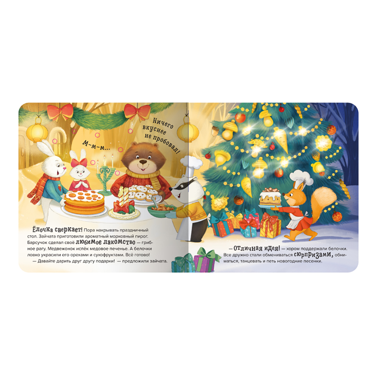 Волшебные огоньки. Ёлочка друзей: «Волшебные огоньки» — новая серия от торговой марки Malamalama! Самая уютная книга на свете — «Ёлочка друзей» — отправляет ребёнка в путешествие по зимнему лесу. Как зверята готовятся к Новому году? С какими чудесами они столкнутся? Милые иллюстрации, добрые персонажи и самые настоящие огоньки на страницах ждут ребёнка в книге. Фонарики на ёлке, свечи в комнате, светлячки или снежинки — внутри каждой страницы располагаются светодиоды, которые выглядывают в крошечные отверстия, заставляя их на самом деле светиться. Отройте для себя настоящее волшебство вместе с Malamalama!