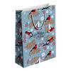 Пакет подарочный с подгибкой, с веревочными ручками. Пакет из картона 200 г/м2 с матовой ламинацией. Размер пакета 32*49 см с глубиной 12 см. Грузоподъемость 3-4 кг. Тематика: НГ