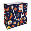 Пакет подарочный с подгибкой, с веревочными ручками. Пакет из картона 200 г/м2 с матовой ламинацией. Размер пакета 20*20 см с глубиной 8 см. Грузоподъемость 2-3 кг. Тематика: НГ.