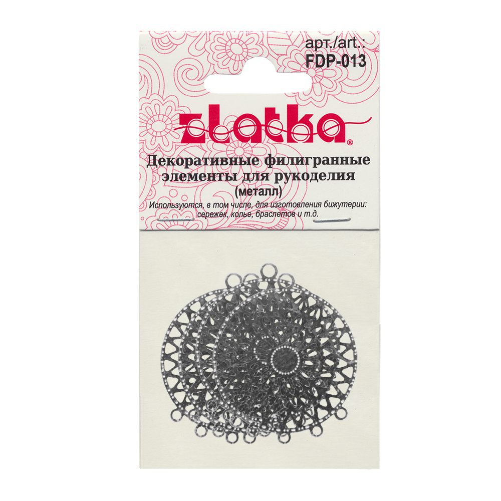 Филигрань - один из древнейших видов художественной обработки металла. Благодаря тонкости и нежности получившиеся украшения с использованием филиграни выглядят всегда неповторимо и оригинально. Декоративные элементы в этой технике могут быть использованыв создании бижутерии как подвески и соединительные элементы, для урашения одежды и аксессуаров. Благодаря своей плоской форме филигранные элементы подоходят для использования в скрапбукинге. Прикреплять их к страницам рекомендуется прозрачными клеевыми подушечками "Mr.Painter" арт. PGP-05, PGP-10 или двусторонней липкой лентой "Mr.Painter" арт. GT-65, GT-85. Форма: Круг Состав: 100% латунь.