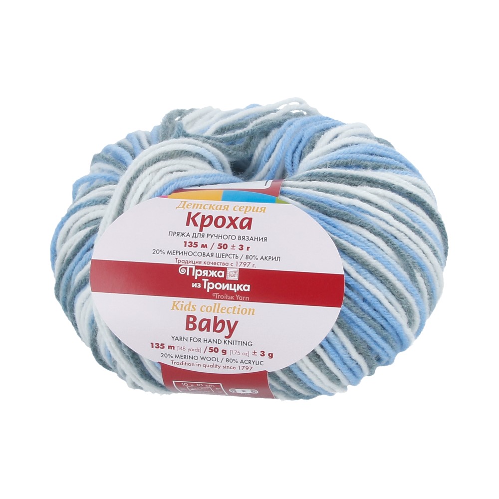 Пряжа из Троицка "Кроха" 80% акрил, 20% шерсть 50 г 135 м №4133 белый/т.серый/св.голубой