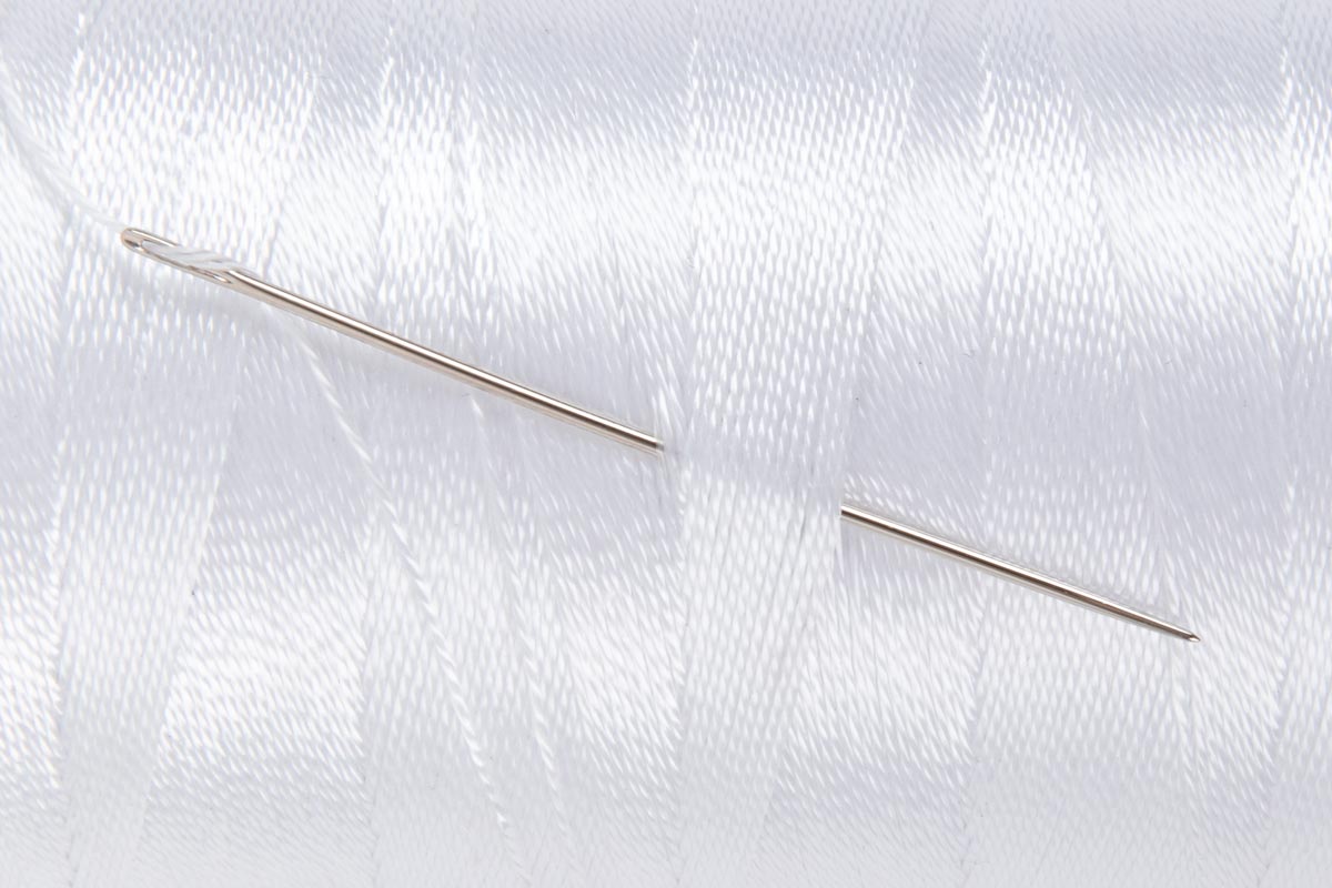 Поверхность нити блестящая и гладкая, что повышает качество строчки.