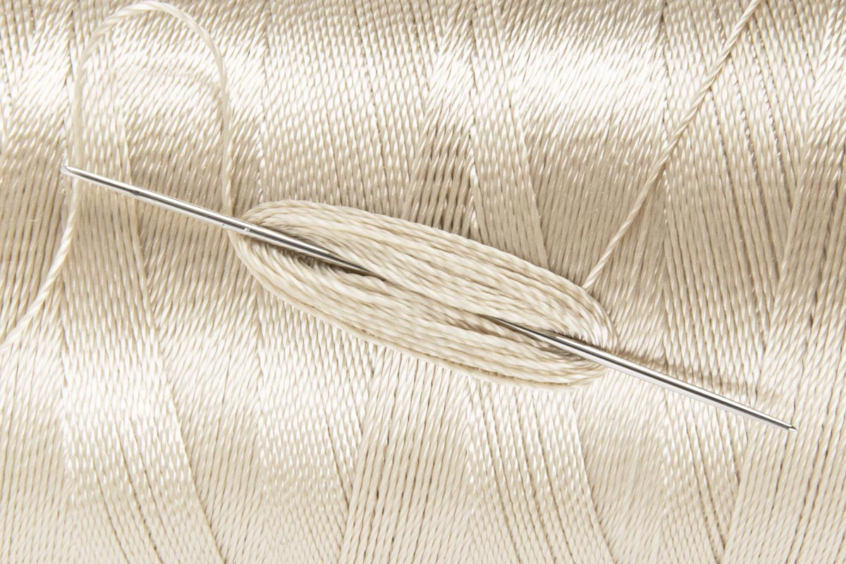 Поверхность нити блестящая и гладкая, что повышает качество строчки.