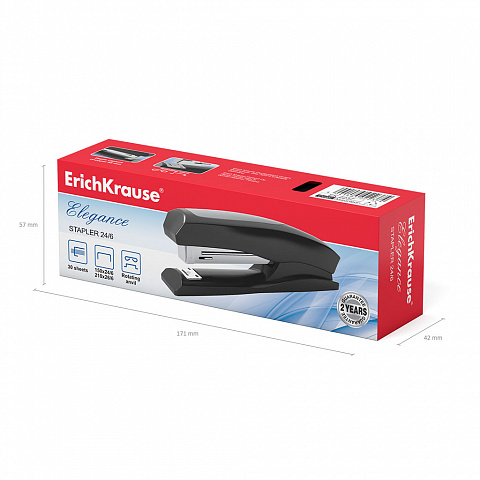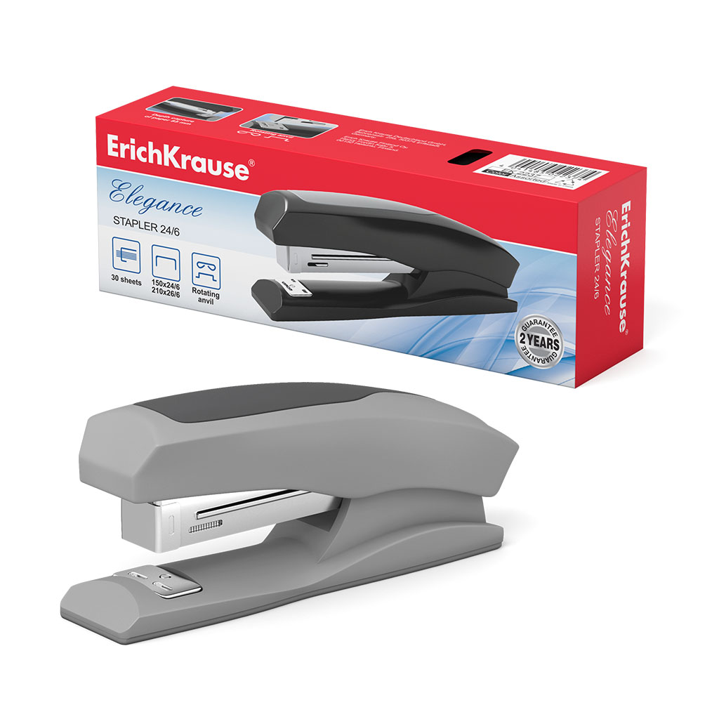 Степлер изготовлен из ударопрочного пластика с высококачественным стальным механизмом. Имеет два режима скрепления: постоянное и временное. На корпусе предусмотрена резиновая противоскользящая вставка. Имеет цельнометаллический механизм подачи скоб. Вмещает до 150 скоб №24/6 и до 210 скоб №26/6. Пробивает до 30 листов. Глубина закладки бумаги до 85 мм. Гарантия на механизм 2 года при условии использования скоб ErichKrause. Товар поставляется в нескольких вариантах цвета/дизайна без возможности выбора.