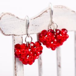 Яркие серьги из алого бисера ко Дню всех влюбленных.