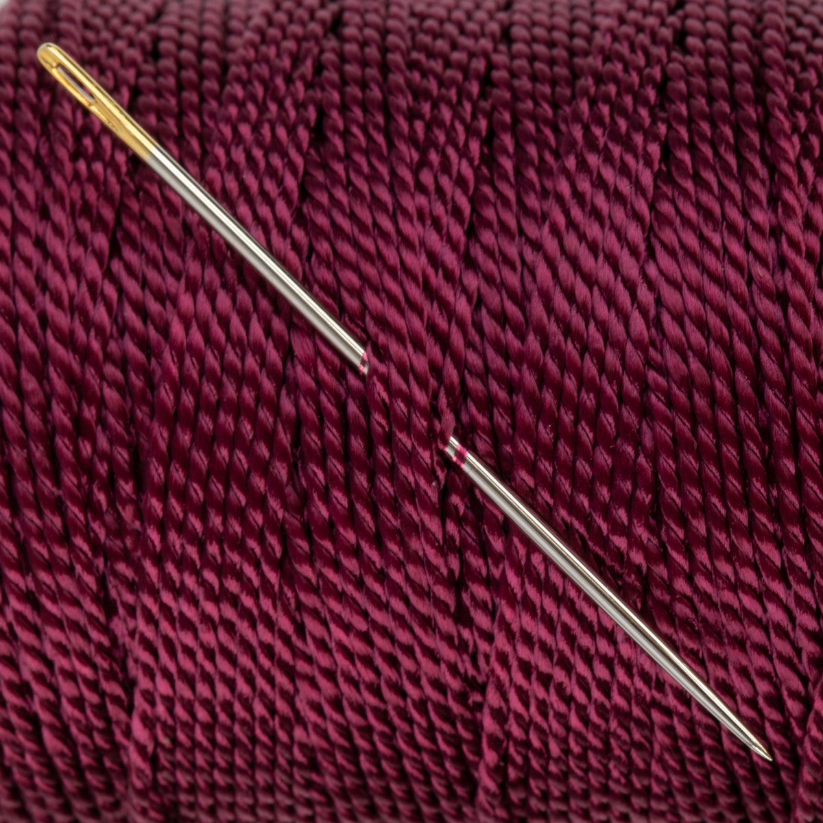 Поверхность нити блестящая и гладкая, что повышает качество строчки.