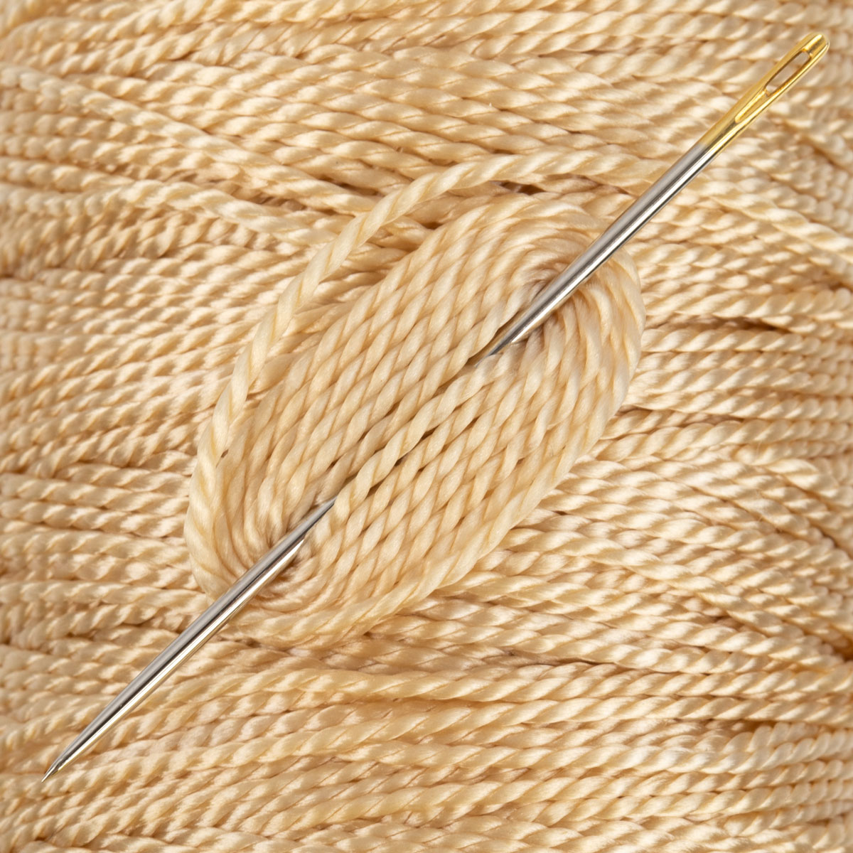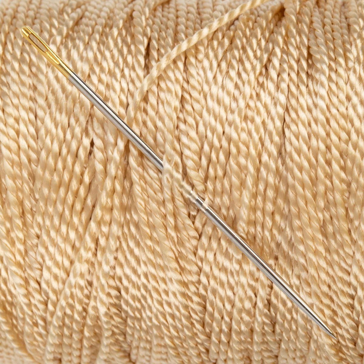 Поверхность нити блестящая и гладкая, что повышает качество строчки.