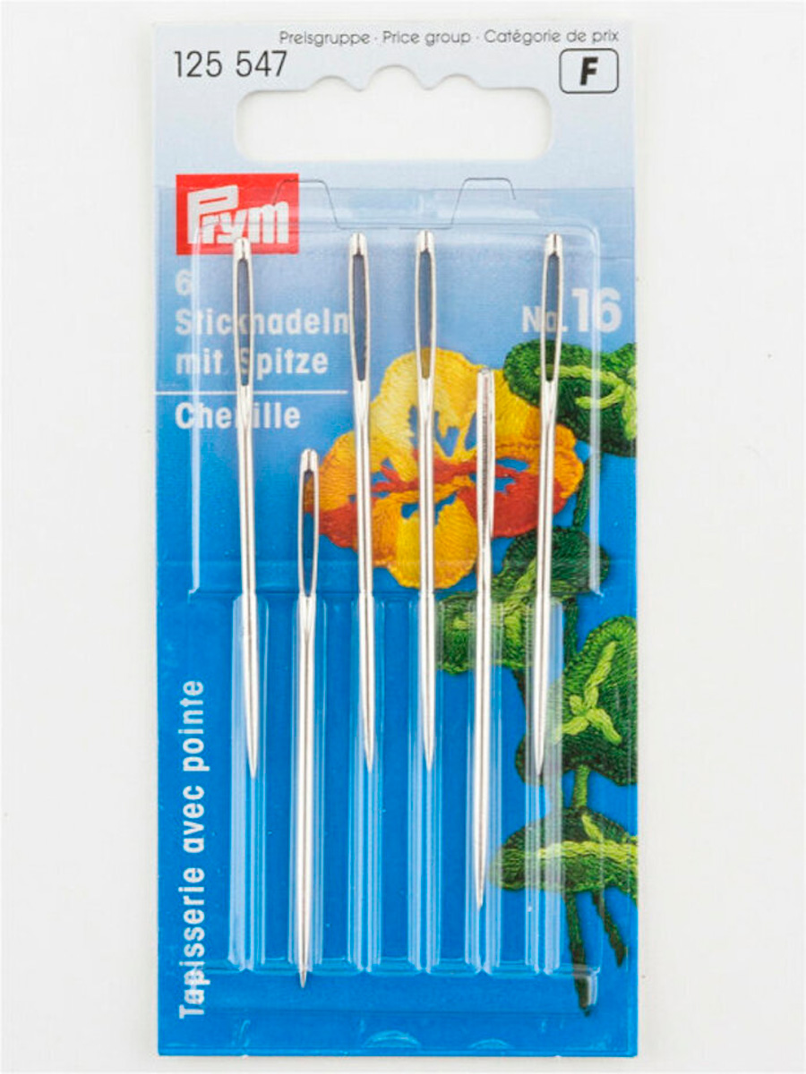 Иглы с острием предназначены, прежде всего, для вышивки шелком и других видов тонкой вышивки. Иглы выполнены абсолютно гладкими, из закаленной стали и снабжены ушком симметричной формы. Для легкого продевания шерсти или грубой пряжи, иглам для вышивки необходимо соответственно большое ушко. Остро отточенный кончик и гладкое покрытие игл позволяют им без усилий проходить сквозь любой материал. Сбалансированное соотношение между толщиной и длиной дает иглам хорошую гибкость в применении. В ассортименте Prym представлены иглы для вышивки: в блистере по 6 штук одного размера, № 16 по 24, а также иглы № 18 - 22 в наборе.