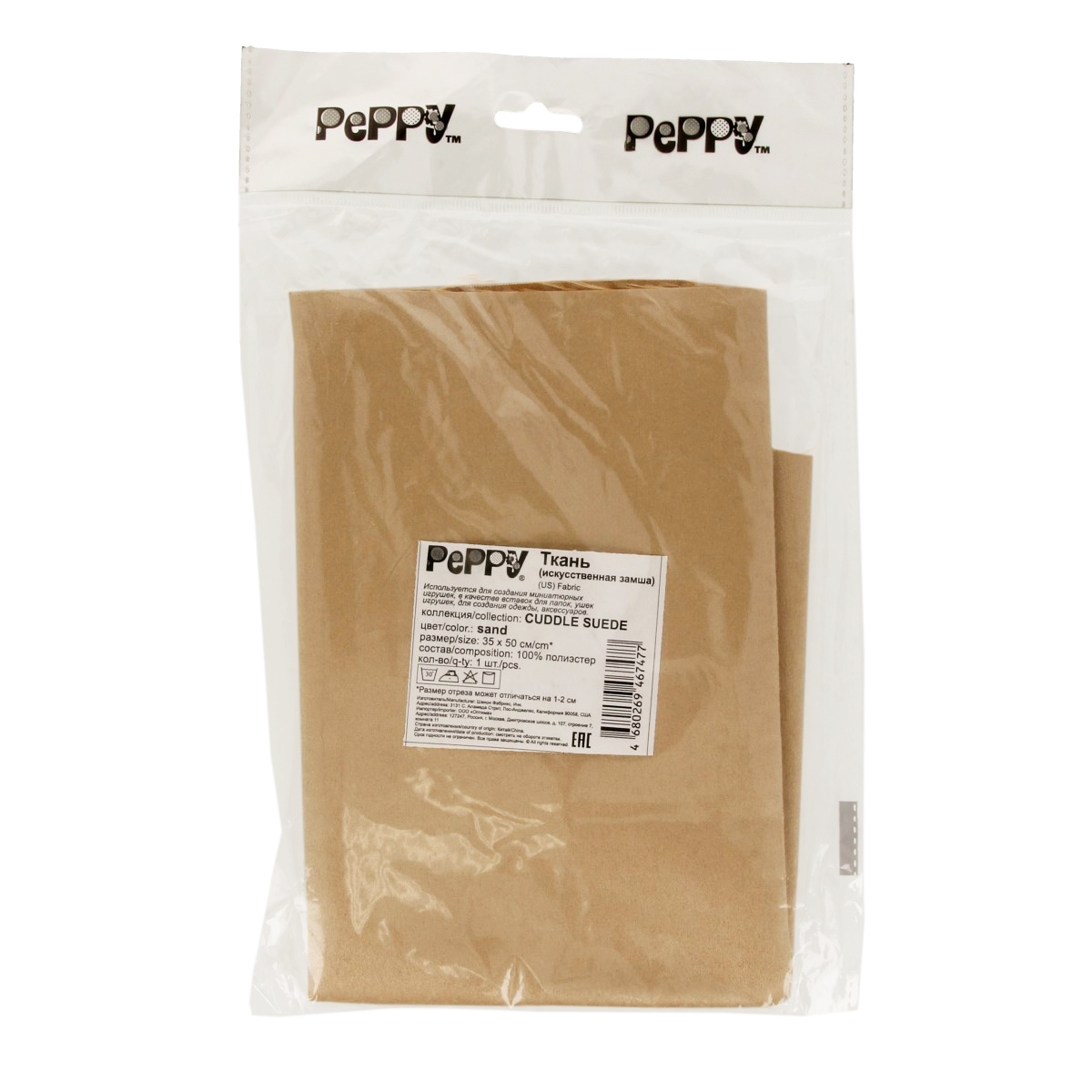 Ткань искусственная замша односторонняя с ворсом 1мм. Плотность 215 г/кв м Фасовка: 35х50 см Состав: 100% полиэстер Тип упаковки: пакет с еврослотом Идеально подходит для создания миниатюрных игрушек, в качестве вставок для лапок, ушек игрушек, для создания одежды, аксессуаров.