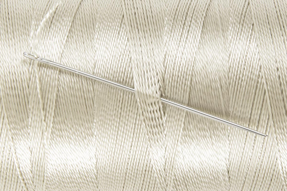 Поверхность нити блестящая и гладкая, что повышает качество строчки.