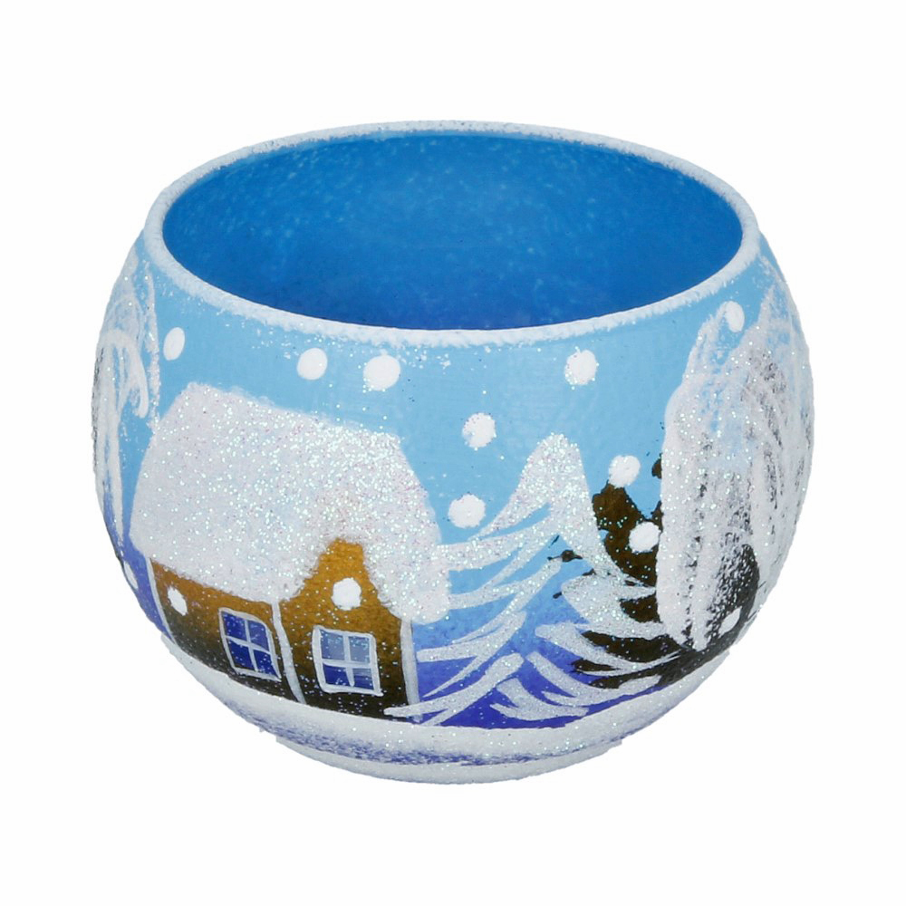В чём волшебство Нового года? В чарующих праздничных огоньках! Оригинальная ваза-подсвечник с ручной росписью создаст в помещении тёплую уютную атмосферу. Просто установите в вазочке свечу, зажгите её и наслаждайтесь прелестью зимних праздников. Эта ваза — универсальное украшение, используйте её как подсвечник или как сосуд для цветов и блестящих декоративных веточек. Изделие выдувается мастером, затем на него наносится роспись. Хрупкий материал и кропотливые детали превращают каждую вазу в произведение творчества, вторую такую же не найти. Этот аксессуар станет уникальным новогодним подарком. Порадуйте себя и близких сказочным настроением!