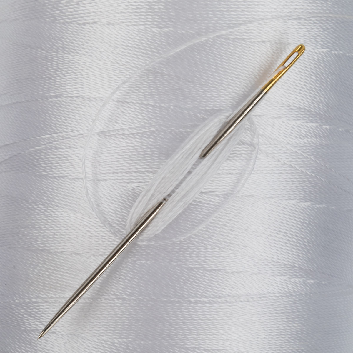 Поверхность нити блестящая и гладкая, что повышает качество строчки.