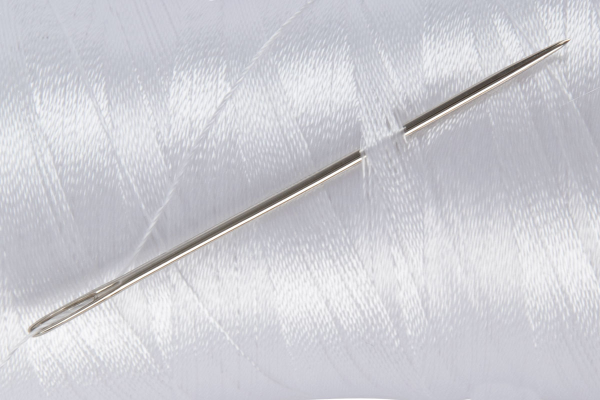 Поверхность нити блестящая и гладкая, что повышает качество строчки.