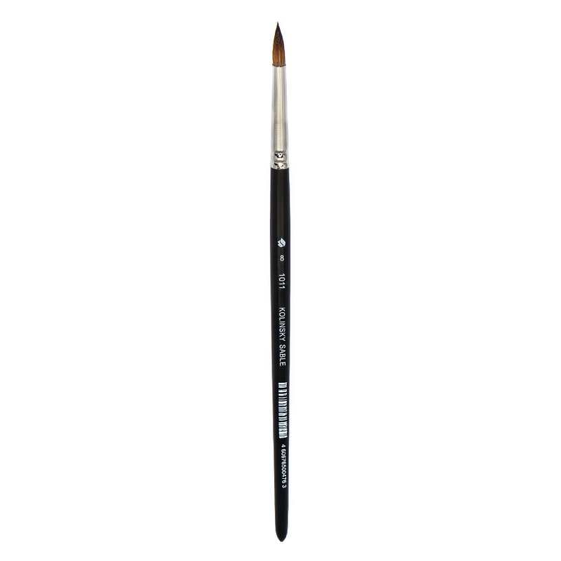 Кисти из волоса колонка с укороченной выставкой рабочей части, никелированной обоймой и короткой ручкой с покрытием черная эмаль. Серия представлена кистями круглой формы рабочей части. Благодаря укороченной форме рабочей части, кисти имеют большую упругость по сравнению с кистями серии 1001. Кистями можно выполнять короткие рубленые мазки, либо с высокой точностью прописывать мелкие детали.