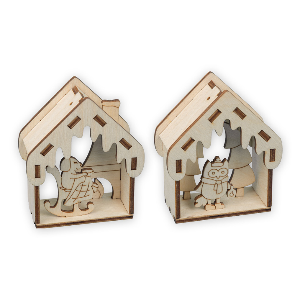 Заготовка для декорирования Mr. Carving ВД-421 Домик-подвеска фанера 8 х 7 х 3.5 см Собачка у камина Фото 2.