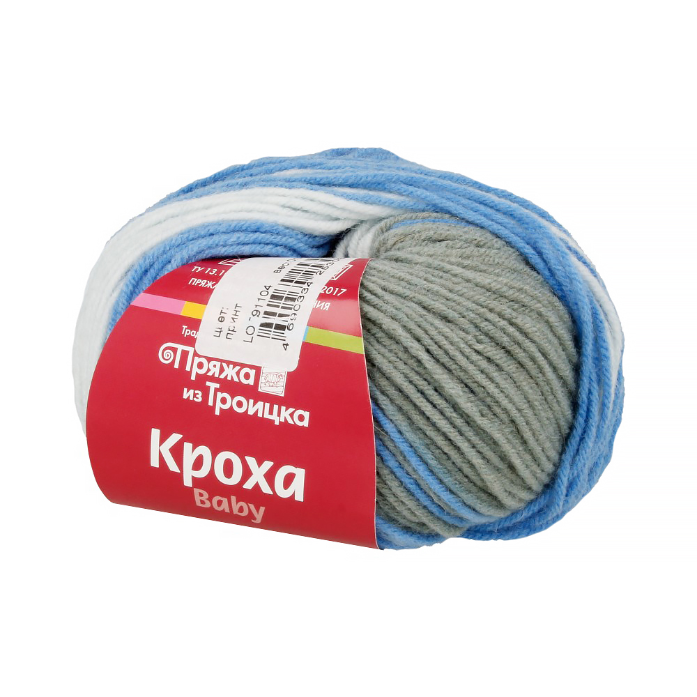 Пряжа из Троицка "Кроха" 80% акрил, 20% шерсть 50 г 135 м №7211 белый/серый/бирюзовый