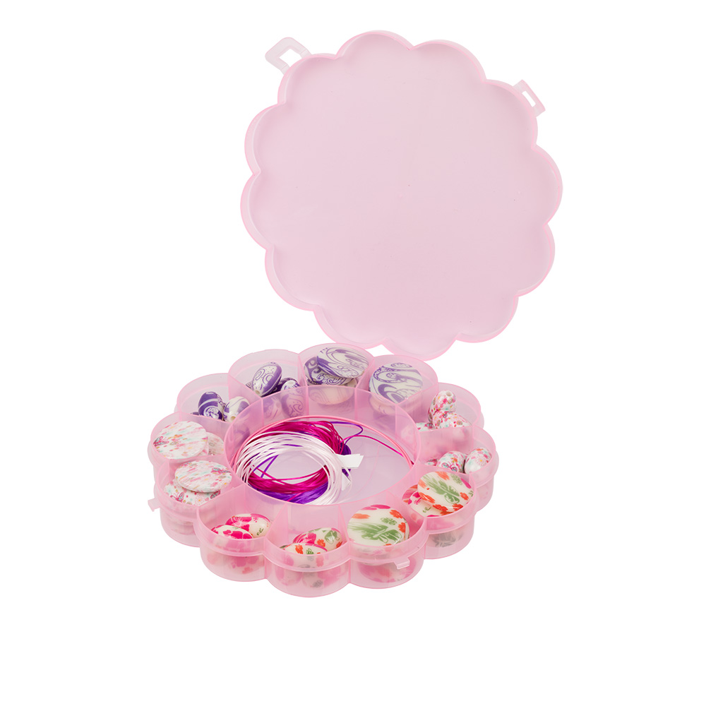 Набор предназначен для изготовления браслетов, ожерелий и других украшений из разноцветных бусин. Набор предлагает проявить фантазию - подобрать сочетание по форме и цвету, и очень быстро и легко, без использования иглы, создать себе комплект украшений. Упаковка в виде пластикового контейнера прекрасно подойдет для хранения готовых украшений и других мелочей. Способствует развитию внимания, мышления, цветового и зрительного восприятия, координации движений. В набор входит: - бусины - спандекс - заготовка для колье Цвета комплектующих набора могут варьироваться.