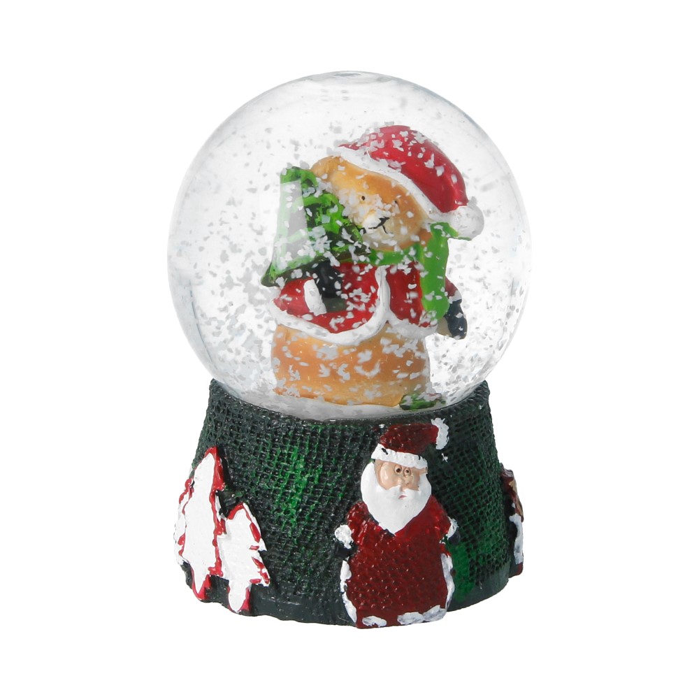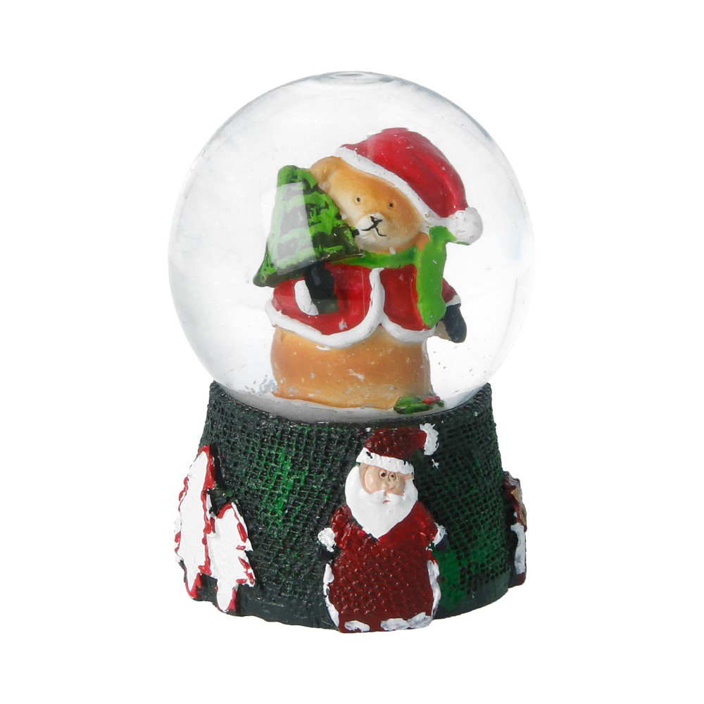 Фигурка декоративная светкой и генератором вьюги в стеклянном шаре, диаметр - 4,5 см. Шар заполнен водой с глиттером, имитурующем снег при встряхивании, фигурка и подставка изготовлены из полимерных материалов. Представлена в 4-х варианта. Внимание: при длительном нахождении в минусовой температуре возможно образование льда, который сместит фигурки и повредит шар.