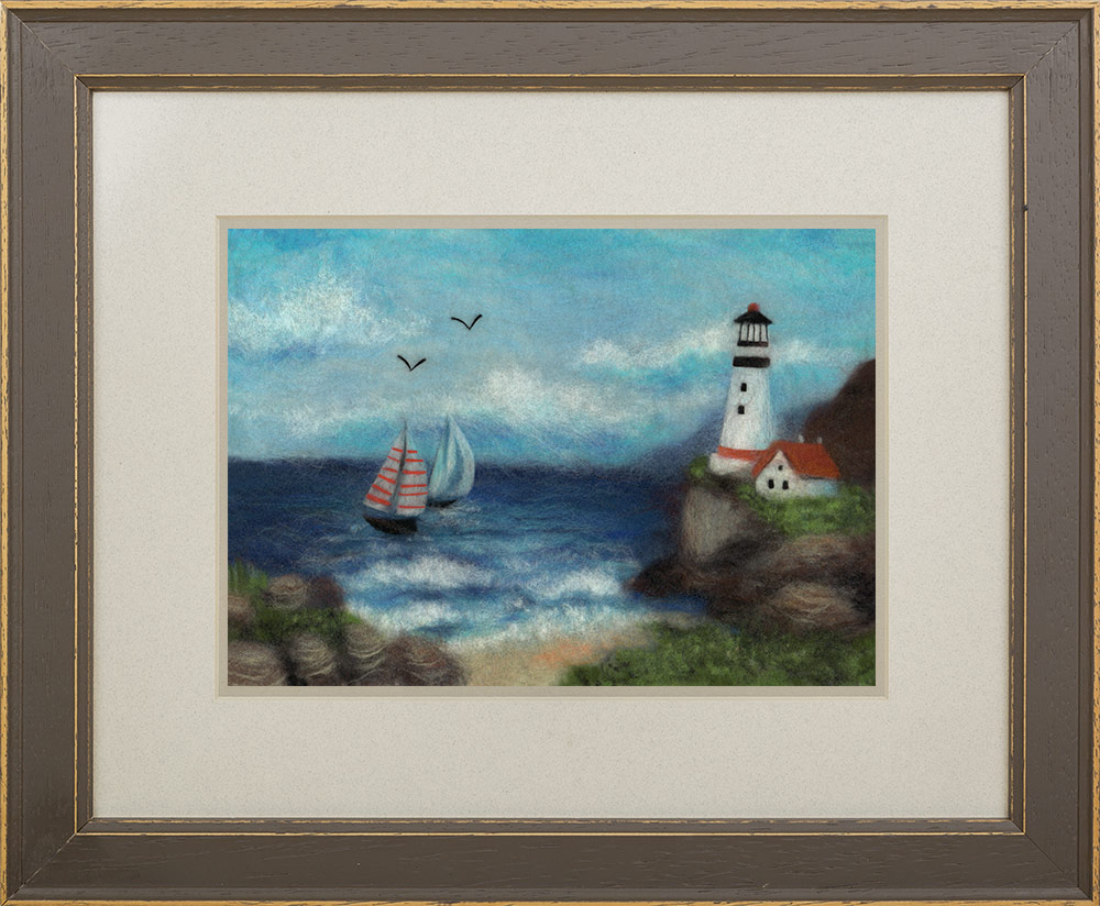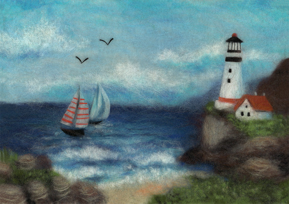 Кто из нас не мечтает о домике у моря? Загадать заветное желание на маяке? Пройтись под парусом вдоль живописного берега? В любое время года, едва к вам душу проникнет солнечный лучик, взгляните на этот морской пейзаж! И теплые воспоминания и мечты о лете разольются теплом в сердце.