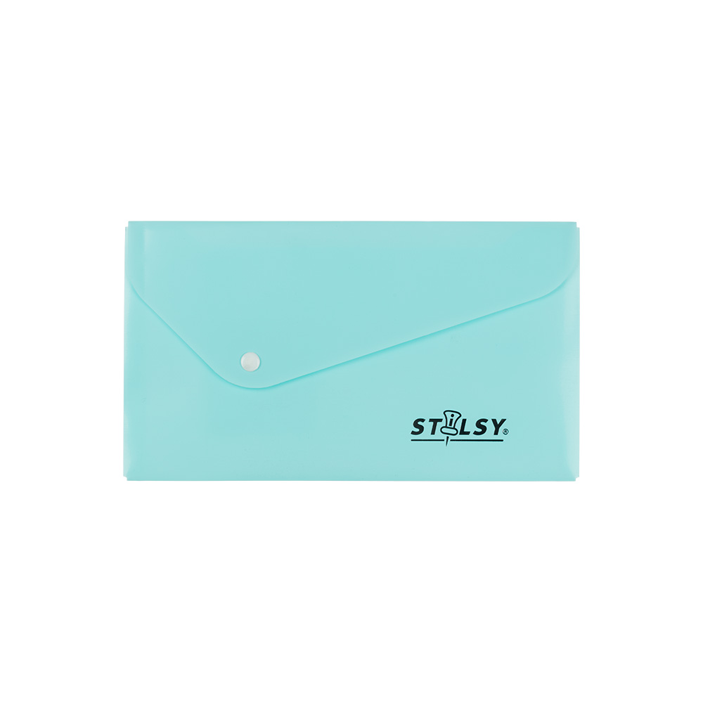 STILSY Папка-конверт на кнопке Travel size, неоновые цвета ST 231203 180 мкм ( 13 x 23 см) мятный Фото 1.