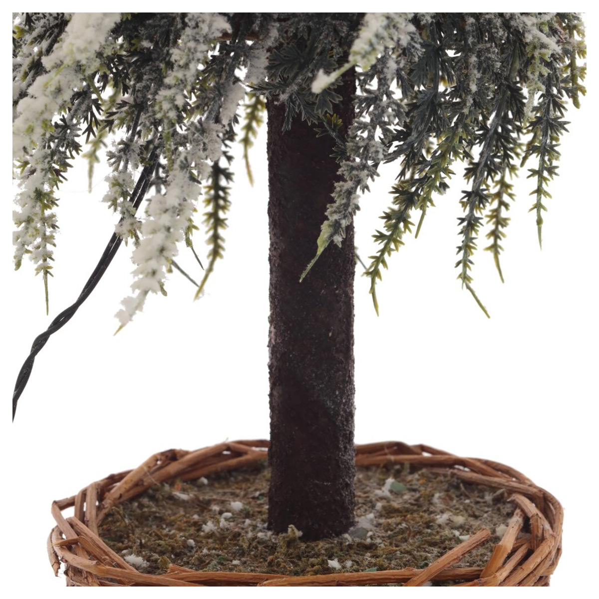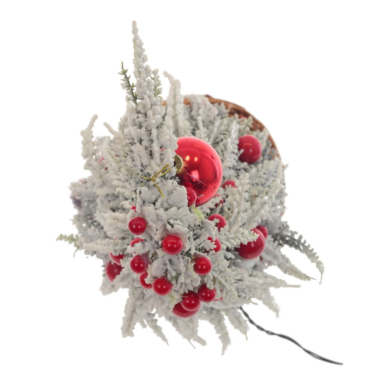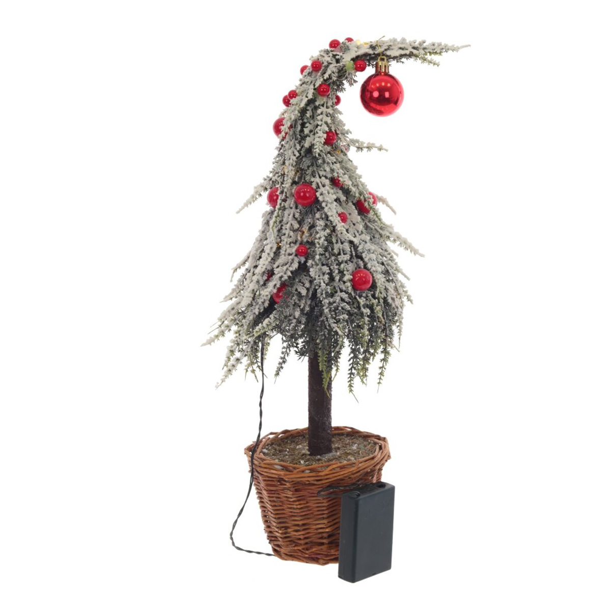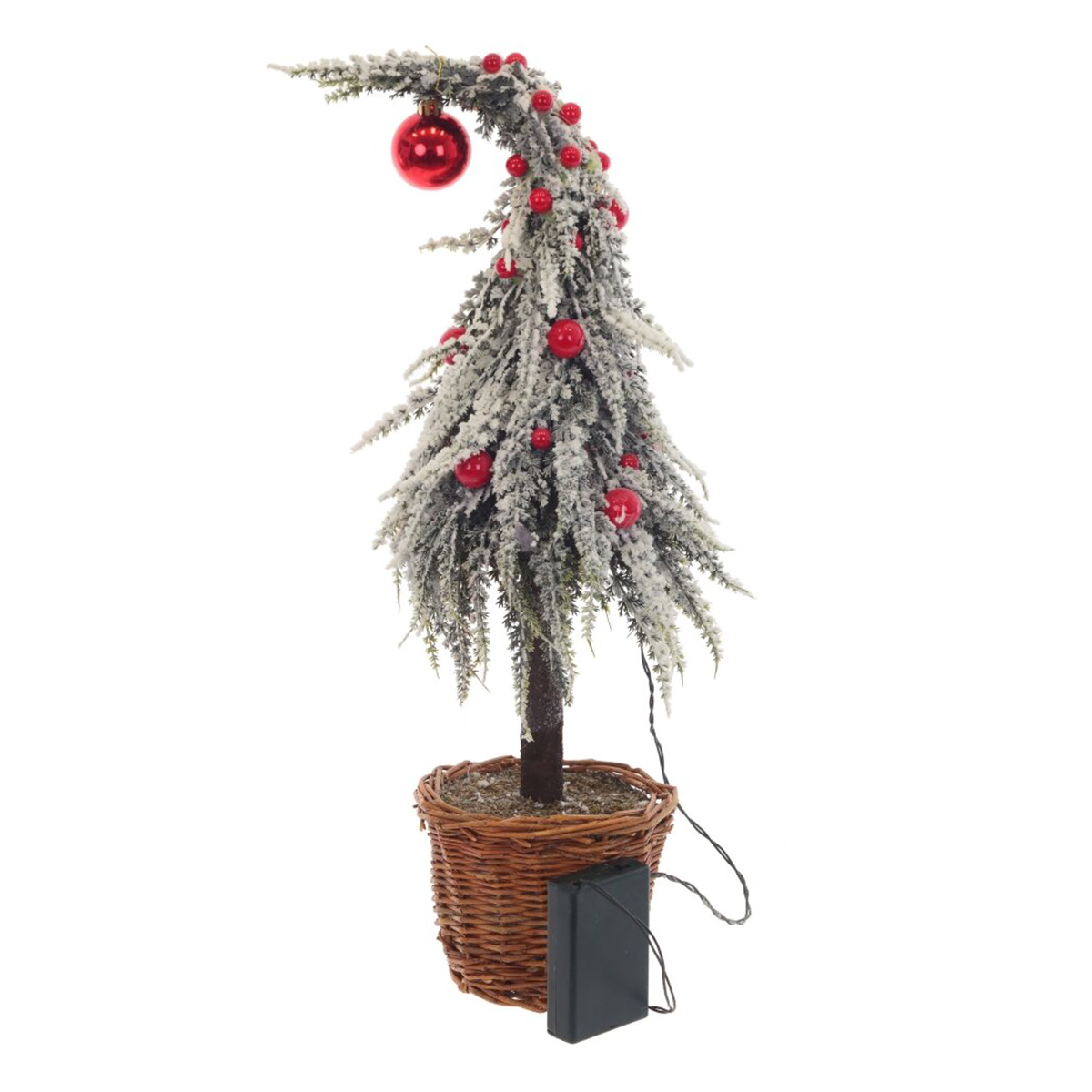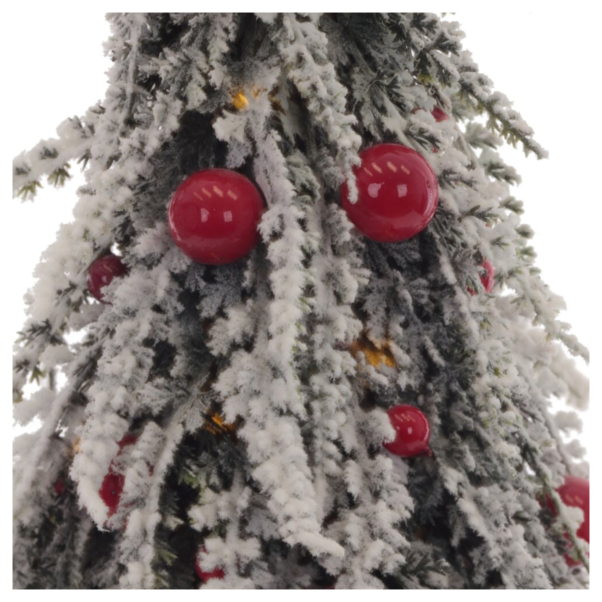 Елка искусственная, с ягодами. Закреплена на устойчивой подставке. Елка не требует сборки. Просто распушите ветки, включите подсветку и лесная красавица украсит ваш интерьер к празднику. Работает от трех батареек ААА .