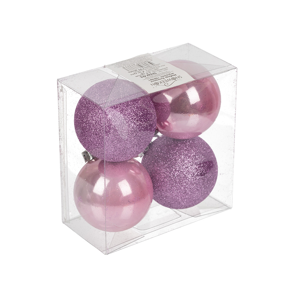 Набор из 4-х новогодних ёлочных шариков в прозрачной упаковке. Диаметр каждого шара 5.8 см, состав - пластик.