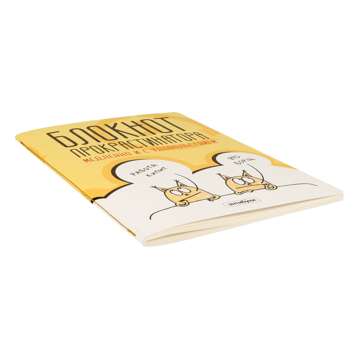 Прокрастинируешь на работе? Выходи на 80-й уровень. С блокнотом прокрастинатора ты не потратишь ни минуты с пользой – только с удовольствием. Отличные идеи оттянуть дедлайны, отвлечься на сериальчик, задания для безделья и странички для раскрашивания – всё, чтобы прокачать свои навыки прокрастинатора. Блокнот формата А5 , 40 листов нежной бумаги цвета слоновой кости в плотной матовой обложке, часть страничек запечатана иллюстрациями от Татьяны Задорожней, а часть – так и быть – пустая для удобных записей. Надёжно прошит типографской нитью.