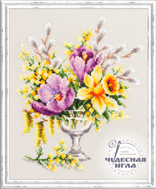 В набор входит: o Нитки мулине - 100% хлопок. o Игла для вышивания. o Канва Аида 14ct светло-серого цвета. o Цветная схема для вышивания. o Краткая инструкция на русском языке.