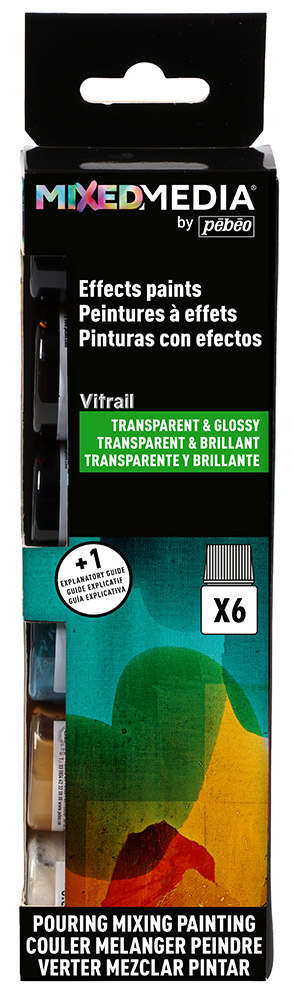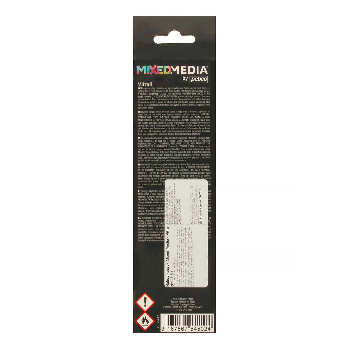 Набор красок для техники Mixed media Vitrail 6 х 20мл. Состав набора: 5 флаконов витражных красок Vitrail + осветляющий медиум