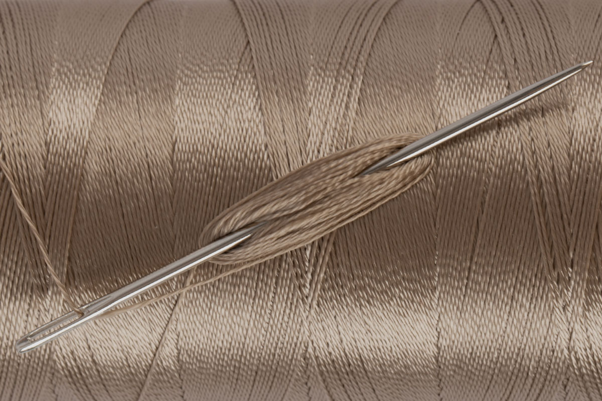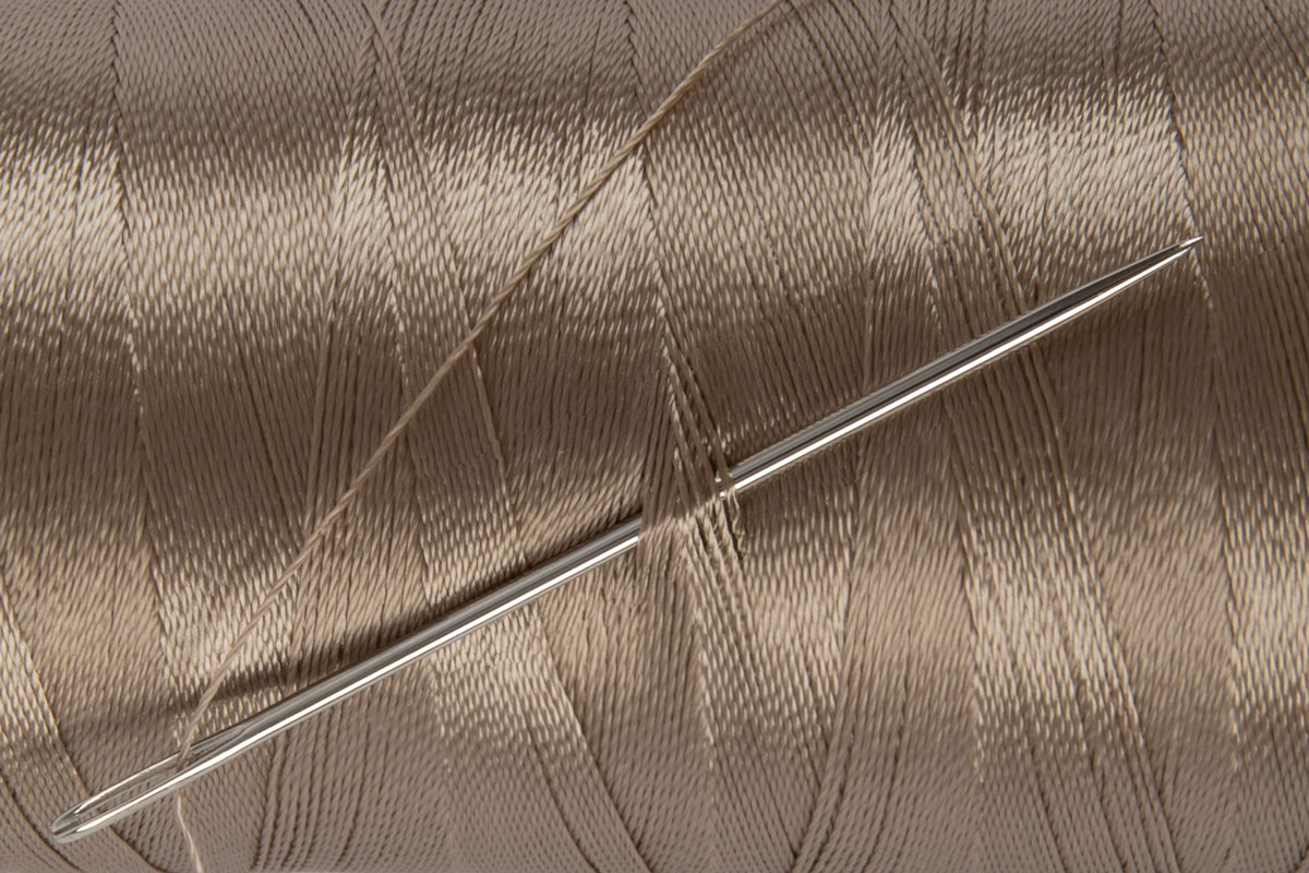 Поверхность нити блестящая и гладкая, что повышает качество строчки.