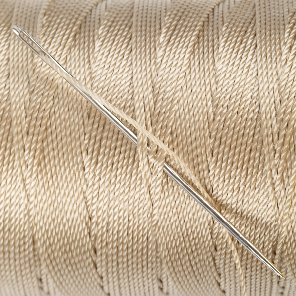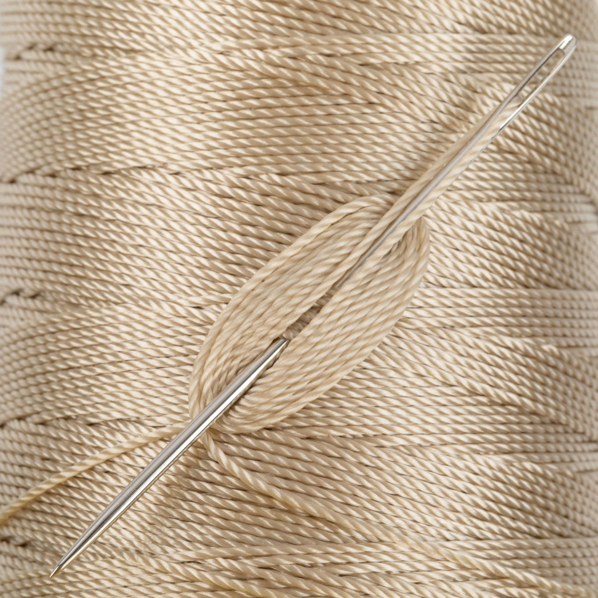 Поверхность нити блестящая и гладкая, что повышает качество строчки.